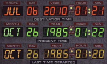 Actualización: Nos lo han indicado amablemente en un comentario, pero lo indico aquí para que no lleve a confusión. La imagen es un fotomontaje, ya que la fecha del futuro a la que viaja McFly en la segunda parte de Regreso al Futuro es 2015 como os comentaba.