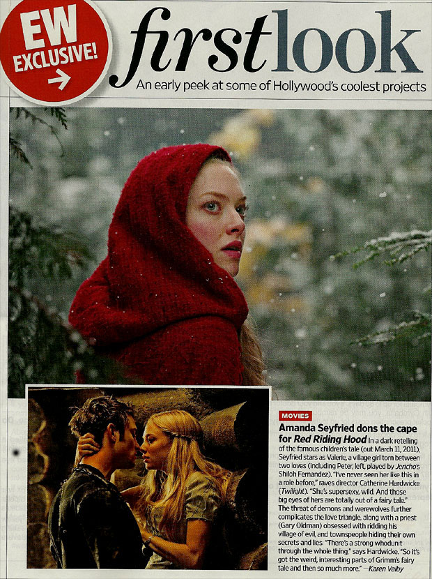 Pues bien, hoy se hacen públicas las primeras fotos oficiales de la película así como un breve resumen del argumento, gracias al cual sabemos que Seyfried da vida a Valerie, una chica de pueblo dividido entre dos amores (incluyendo a Pedro, interpretado por Shiloh Fernandez). La amenaza de los demonios y hombres lobo complica aún más este triángulo amoroso, junto con un sacerdote (Gary Oldman) obsesionado con liberar a su pueblo del mal, y la gente del pueblo escondiendo sus propios secretos y las mentiras.