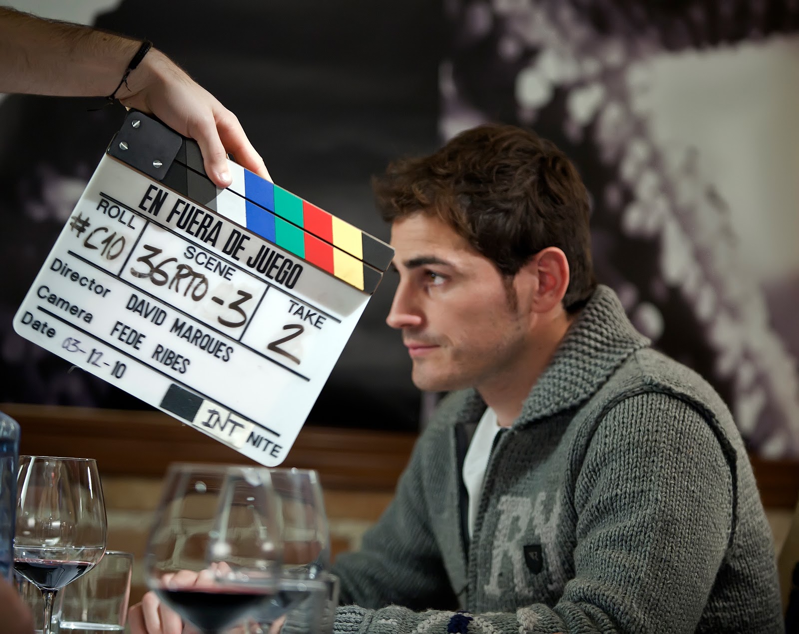 El portero de la Selección Española, Iker Casillas, colgó por un día sus botas para participar en el rodaje de la comedia sobre el mundo del futbol En fuera de juego, en la que hace un cameo compartiendo escena con el protagonista de la película, Fernando Tejero (Javi) un representante de futbol de baja categoría que finge conocer al famoso futbolista para impresionar a su socio.