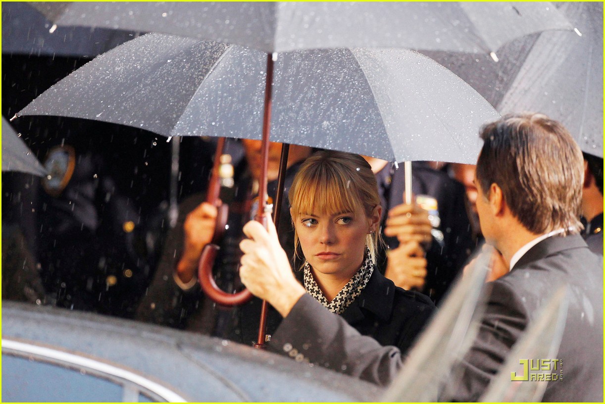 En las imágenes del set apreciamos a Stone con un paraguas bajo la lluvia, en lo que se supone que es un funeral frente a una Catedral, pero tendremos que esperar todavía para saber quien ha muerto, pues su estreno está previsto para el 3 de julio de 2012: