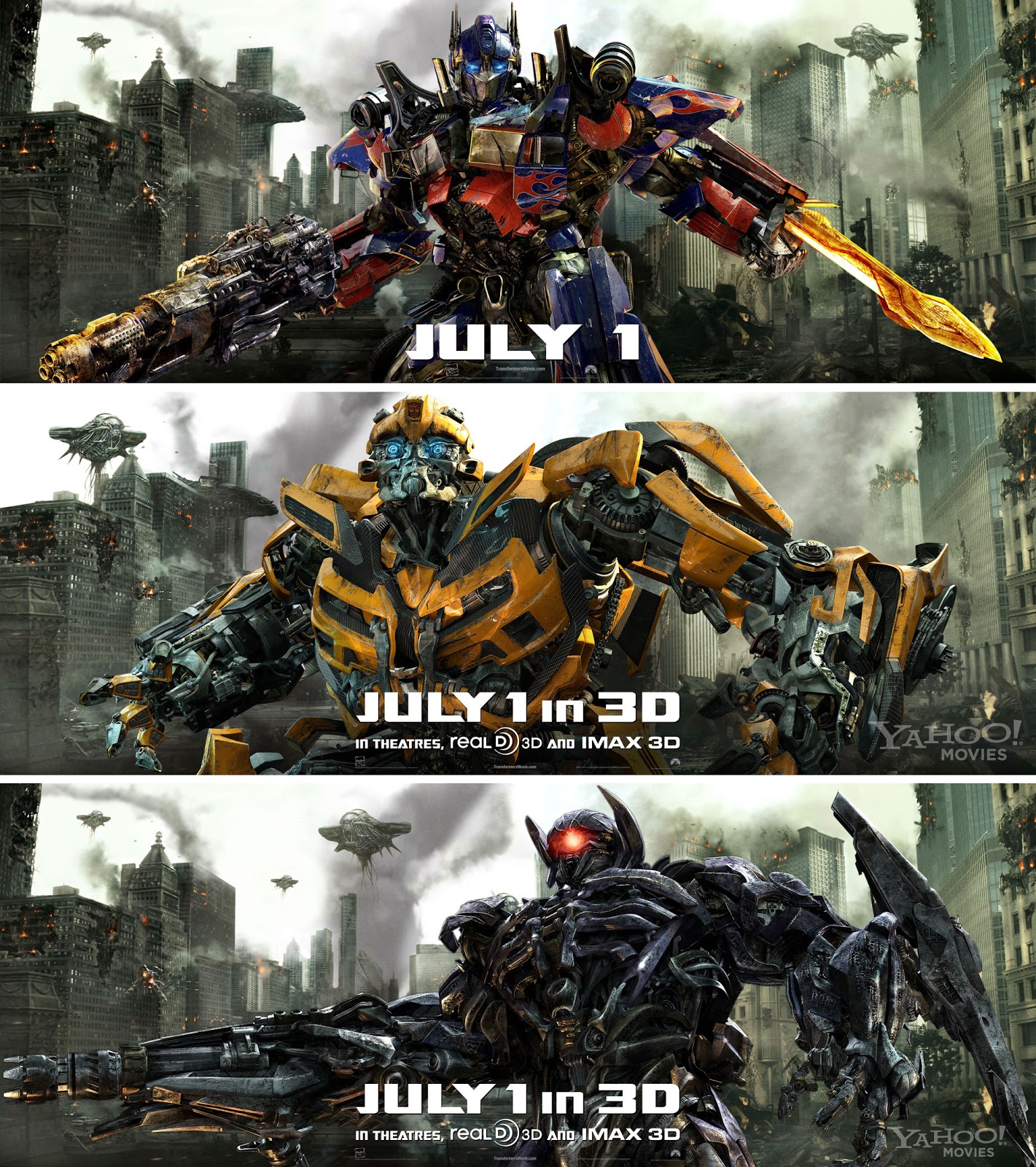 Remesa de banners promocionales de Transformers: Dark of the Moon descubrimos hoy, centrados en Optimus Prime, Bumblebee y Shockwave: