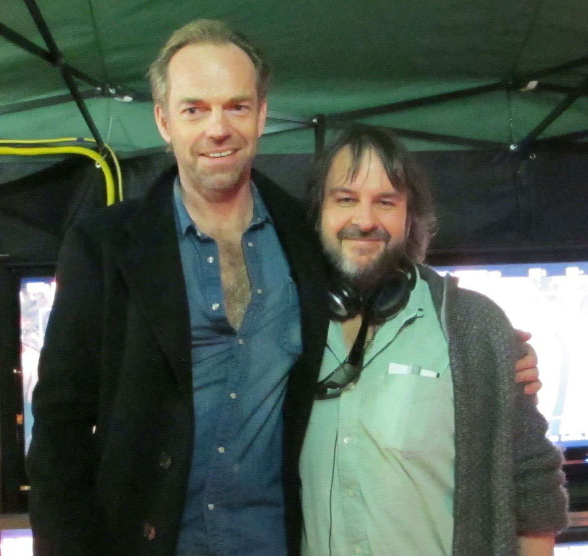 Durante tiempo se ha rumoreado sobre la posible presencia en El Hobbit de Hugo Weaving repetiendo su papel de Elrond, pero nada se había confirmado… aunque vimos una foto del director Peter Jackson y Weaving en el set de las dos películas, donde Jackson afirmó que el actor acababa de pasar por el set de visita: «Un viejo amigo vino a visitarme el día de hoy …»: