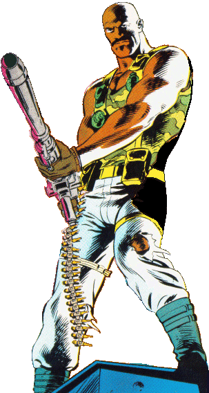 El personaje es un especialista en armamento pesado, descrito como alguien con una pistola del calibre 50 y aún así capaz de soportar los retrocesos de gran fuerza, aunque su deseo es convertirse en un gran chef.