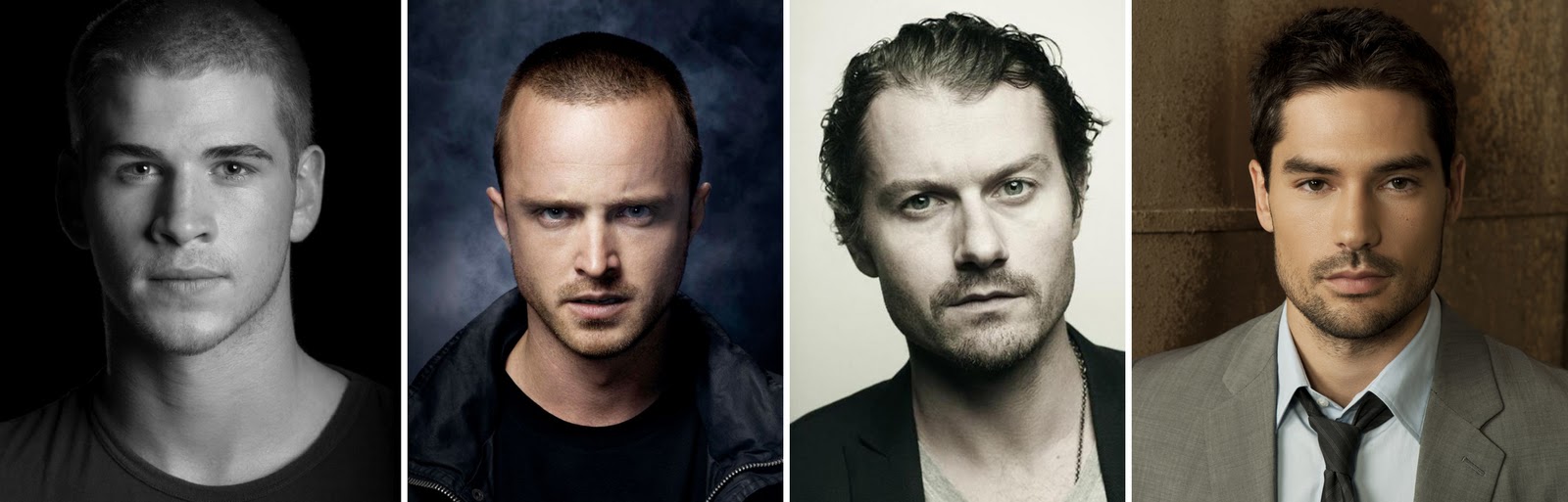 Los candidatos finales (de izquierda a derecha en la imagen) son Liam Hemsworth (actor de Los juegos del hambre), Aaron Paul (de la serie Breaking Bad), James Badge Dale (de la miniserie The pacific) y DJ Cotrona (que aparece en GI Joe 2: Retaliation).