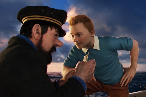 Centrándonos ahora un poco en el argumento de la película y su contenido hay que destacar que aunque el título sea El secreto del Unicornio, la trama de la película no se basa íntegramente en un sólo comic de las aventuras de Tintín. De hecho si fuera así, nos habrían dejado con un final abierto ya que el álbum con el mismo título continúa en el siguiente álbum con el título El tesoro de Rackham el Rojo. Pero esos no son los únicos títulos que he reconocido en la película, también hay parte de El cangrejo de las pinzas de oro ya que es ahí donde Tintín conoce al Capitán Haddock. Ahora bien, al estar trabajando con material de al menos tres aventuras contadas en tantos libros el número de personajes que aparecen sería demasiado elevado y lo único que se consigue es confundir al espectador. Es por ello por lo que hay que indicar que estamos ante una película basada en las historias del personaje de Hergé, pero que no han sido transcritas al 100%.