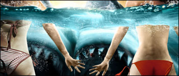 La trama, por si os interesa, nos cuenta como, cuando un barco es hundido por un tiburón mutante de dos cabezas, los únicos supervivientes escapan a un atolón desierto. Sin embargo, sufre una inundación, y ya no están a salvo de las fauces del monstruo.