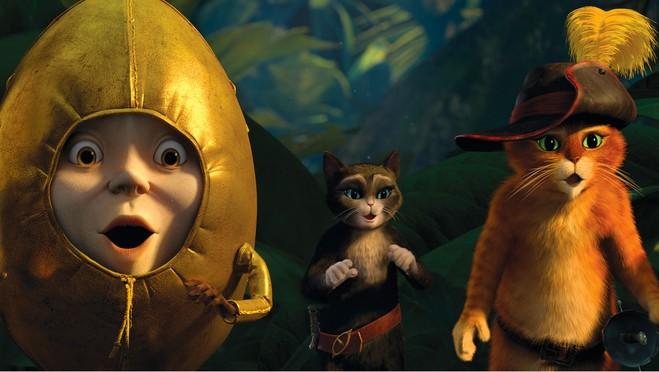 La historia gira en torno a la búsqueda de las alubias mágicas y la oca de los huevos de oro. Una leyenda mítica que Humpty Dumpty, el amigo de infancia del Gato con Botas, persiguió durante mucho tiempo. y que ahora, después de haberse distanciado ambos amigos, vuelve a escena: los bandidos Jack y Jill ( una pareja de bribones muy lograda, lástima de su poco protagonismo en la segunda mitad de la película ) las han encontrado, y Humpty tiene un plan para recuperarlos y llegar hasta el castillo de la oca de oro. En el camino, aventuras, amor, traiciones, música y baile, todo ello sazonado con una pizca de humor, y plasmado a lo largo de, apenas, hora y media. Duración, que por otro lado es más que justa, porque el guión peca de demasiado sencillo, correcto, infantil, y carente de la pizca de originalidad y travesura que caracterizaba a Shreck, y que aquí debería haber reverdecido, de manera que apenas da tiempo a aburrirte, en caso de que no te guste la historia.