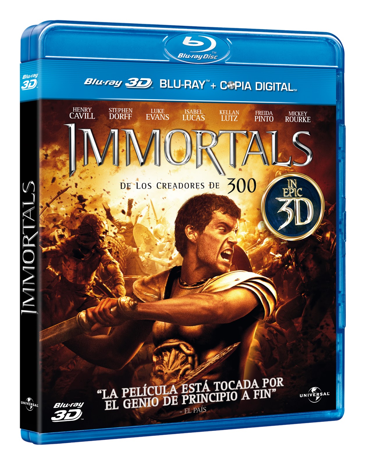 Immortals, y lo hace en ediciones para todos los gustos, tanto en DVD como Blu-Ray y Blu-Ray 3D, destacando la edición exclusiva de Fnac que contiene la película en 3D y 2D, y una novela gráfica en inglés de más de 100 páginas inspirada en la película