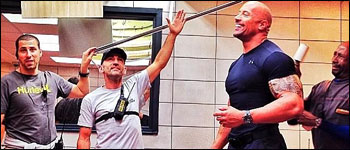 El actor escribió en su twitter: «La Roca lanza a un hombre a una mesa muy duramente, todo se derrumba».