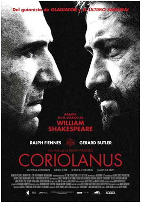 Coriolanus está escrita por John Logan (Gladiator, El último Samurai, Sweeney Todd), y cuenta con un gran reparto encabezado por el propio Ralph Fiennes (Harry Potter y las reliquias de la muerte, En tierra hostil, Escondidos en Brujas, El jardinero fiel), así como Gerard Butler (Un buen partido, 300), Vanessa Redgrave (Expiación, Ábrete de orejas, Blow Up) Brian Cox (El origen del planeta de los simios, Zodiac, Match Point) y Jessica Chastain (La noche más oscura, El árbol de la vida, Criadas y señoras).