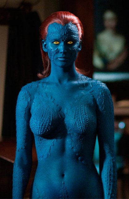 Lawrence ha declarado: «Estoy muy emocionada porque voy a usar un traje de cuerpo [en X-Men: Days of Future Past]. Va a ser desde el cuello hacia abajo por lo que va a ahorrar tiempo y evitar las ampollas».