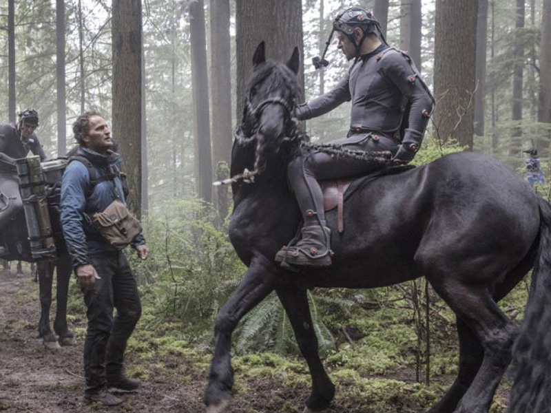 Hoy tenemos una nueva foto del set ubicado en New Orleans donde se está rodando Dawn of the planet of the apes (secuela de El origen del planeta de los simios, que, a su vez, continúa siendo una precuela y un remake de toda la saga original) y que nos deja apreciar a un grupo de personas, dirigidos por Jason Clarke, corriendo hacia Caesar (Andy Serkis) en un caballo.