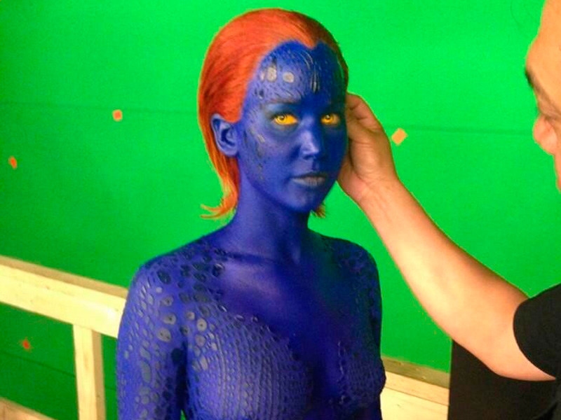 Jennifer Lawrence maquillada por completo como Mística en la nueva película de
