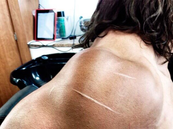 En las fotos reveladas vemos al actor en la silla de maquillaje, consiguiendo tener una cicatriz en el brazo, y donde de nuevo vemos que lucirá una larga cabellera, teniendo ganas de ver al fin al actor con pelo, además de una foto del arma que llevará, algo ensangentrada ya.