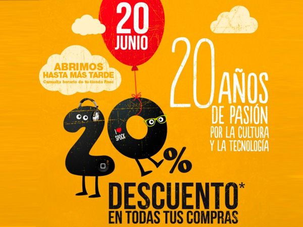 Acostumbrados a hablaros del cine en casa, hoy no podemos dejar de anunciaros que, con motivo del aniversario de la tienda fnac.es, hoy, desde las 22:00 horas, todas las compras tendrán un 20% de descuento (15% de descuento directo y otro 5% para socios).