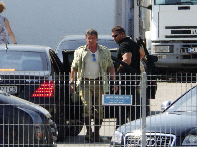 En la primera imagen que se ha filtrado se ve a Sylvester Stallone (guionista y escritor de la idea que da origen a la película) llegando al plató de rodaje, vestido de camuflaje, la acción no tardará en comenzar a filmarse.