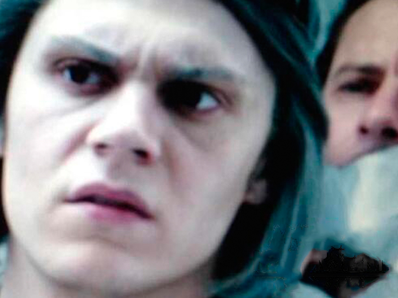 Ahora se ha filtrado una imagen del actor Evan Peters (parece que acompañado de Michael Fassbender) en una página de twitter brasileña dedicada a la serie American Horror Story caracterizado como el personaje.
