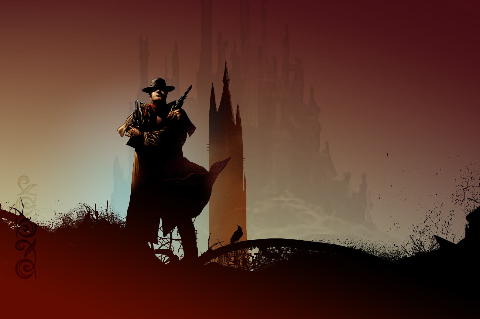 En los libros, Roland Deschain es el último miembro superviviente de una prestigiosa orden de caballería conocido como pistoleros y el último de la línea de «Arthur Eld», el análogo del mundo del Rey Arturo. Políticamente organizada entre las líneas de una sociedad feudal, comparte características tecnológicas y sociales con el viejo oeste americano pero es también mágica. Muchos de los aspectos mágicos se desvanecieron de Mundo Medio, pero quedan restos, al igual que reliquias de una sociedad tecnológicamente avanzada.