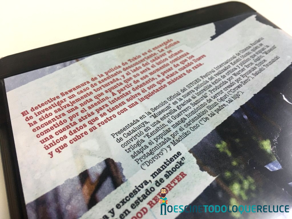 La edición Blu-ray de Museum viene presentada en un estuche negro con funda o-card, y en el interior del estuche encontramos un libreto con información y análisis de la película escrito por Mike Hostench, Subdirector del SITGES – Festival Internacional de Cinema Fantàstic de Catalunya, como podéis ver en la galería inferior. A nivel de contenido, además de la película, en el disco tenemos un Making Of de 47 minutos con entrevistas al director Keishi Otomo y la estrella Shun Oguri.