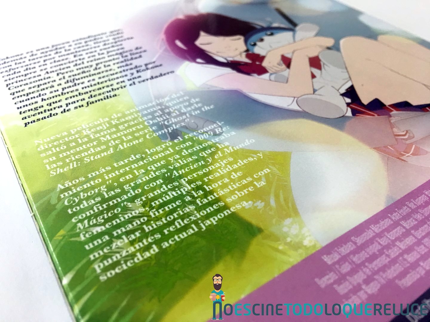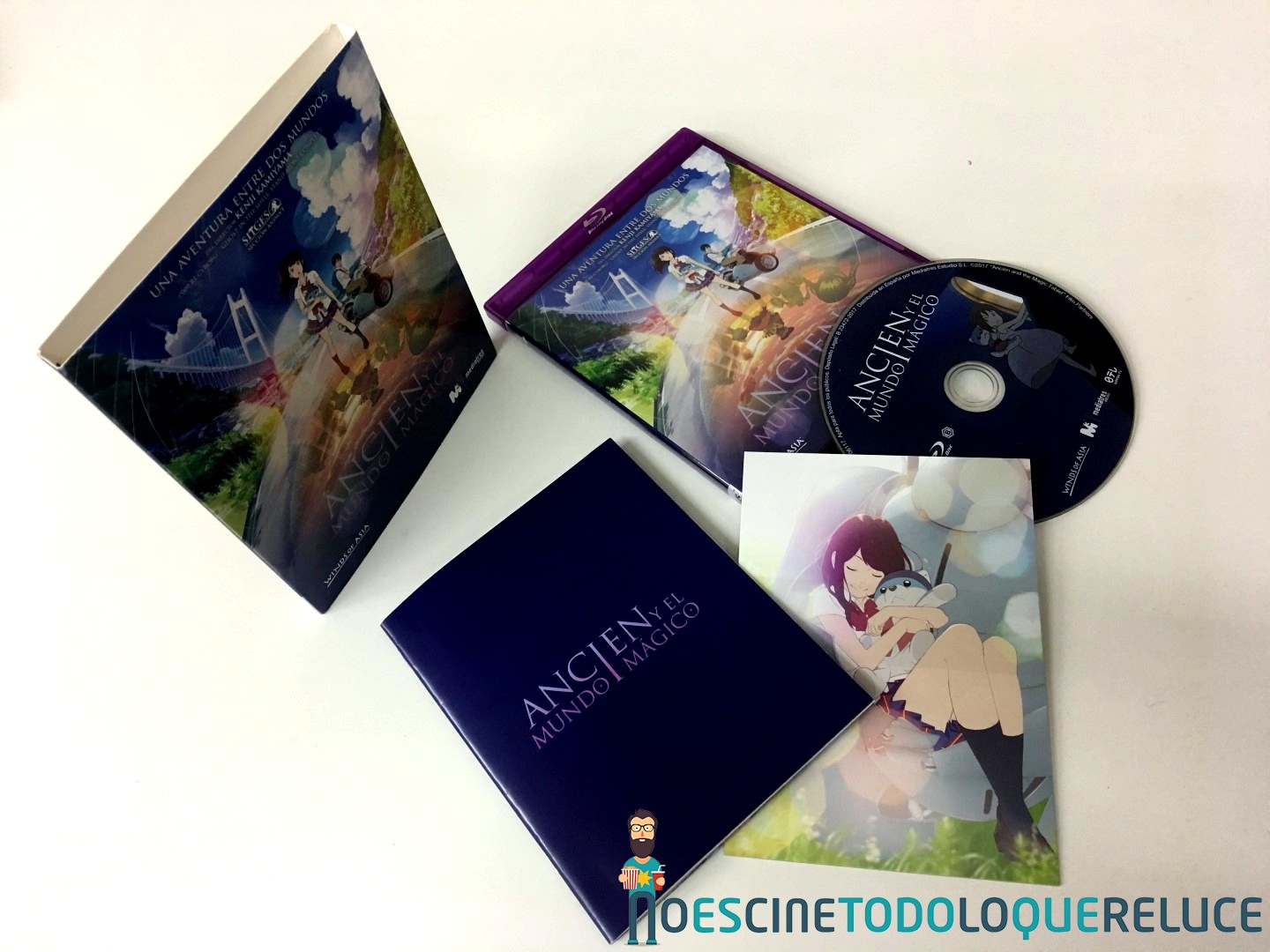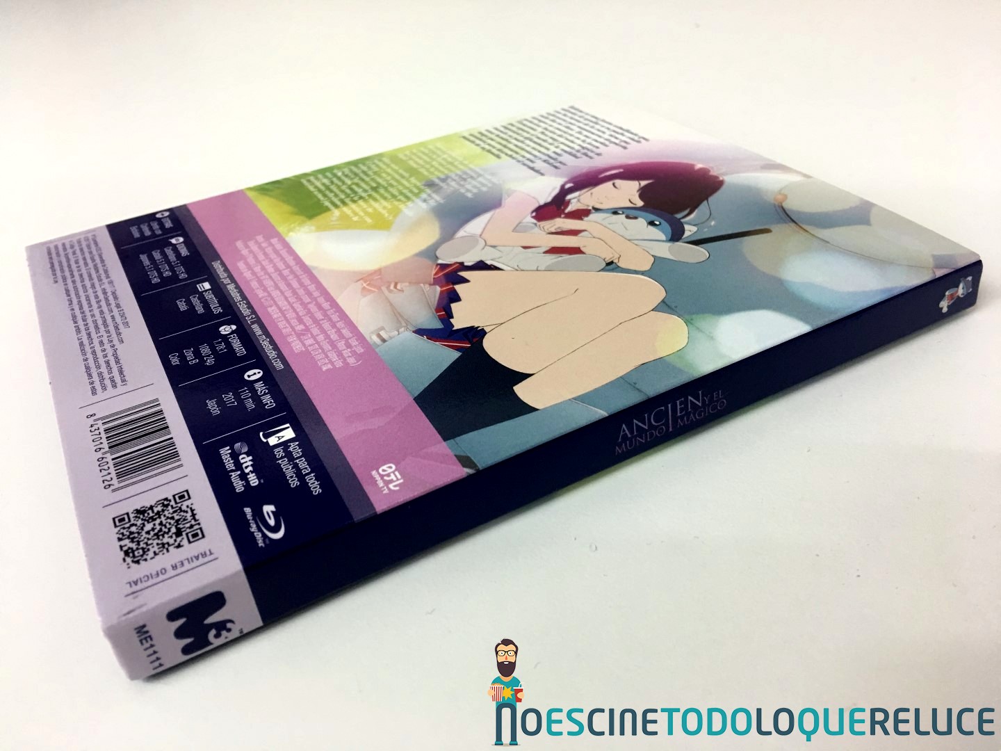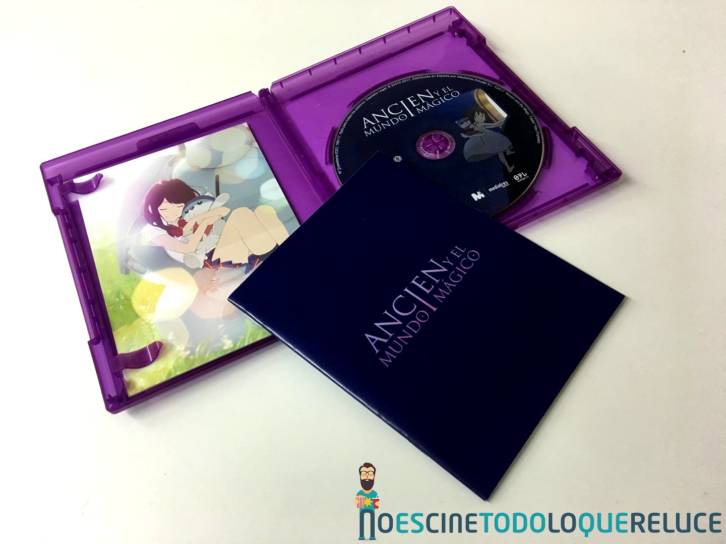 La edición Blu-ray de Ancien y el Mundo Mágico viene presentada en un estuche fucsia translucido a juego con la carátula, cubierto por una funda o-card, y en el interior del estuche encontramos un libreto de 20 páginas con información y bocetos de la película, además de tres preciosas postales con ilustraciones de la película exclusivas para la edición, como veis en la galería inferior.