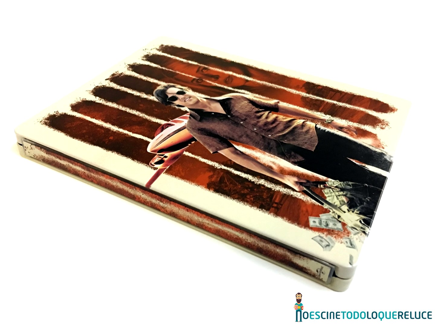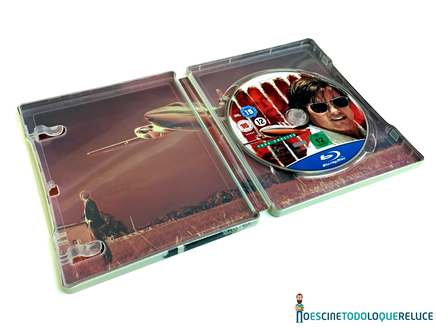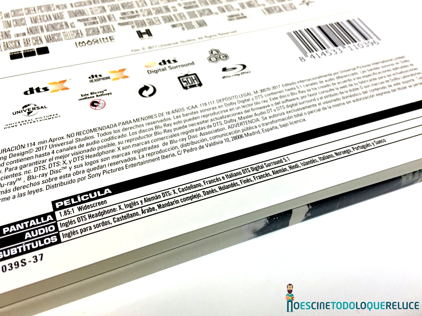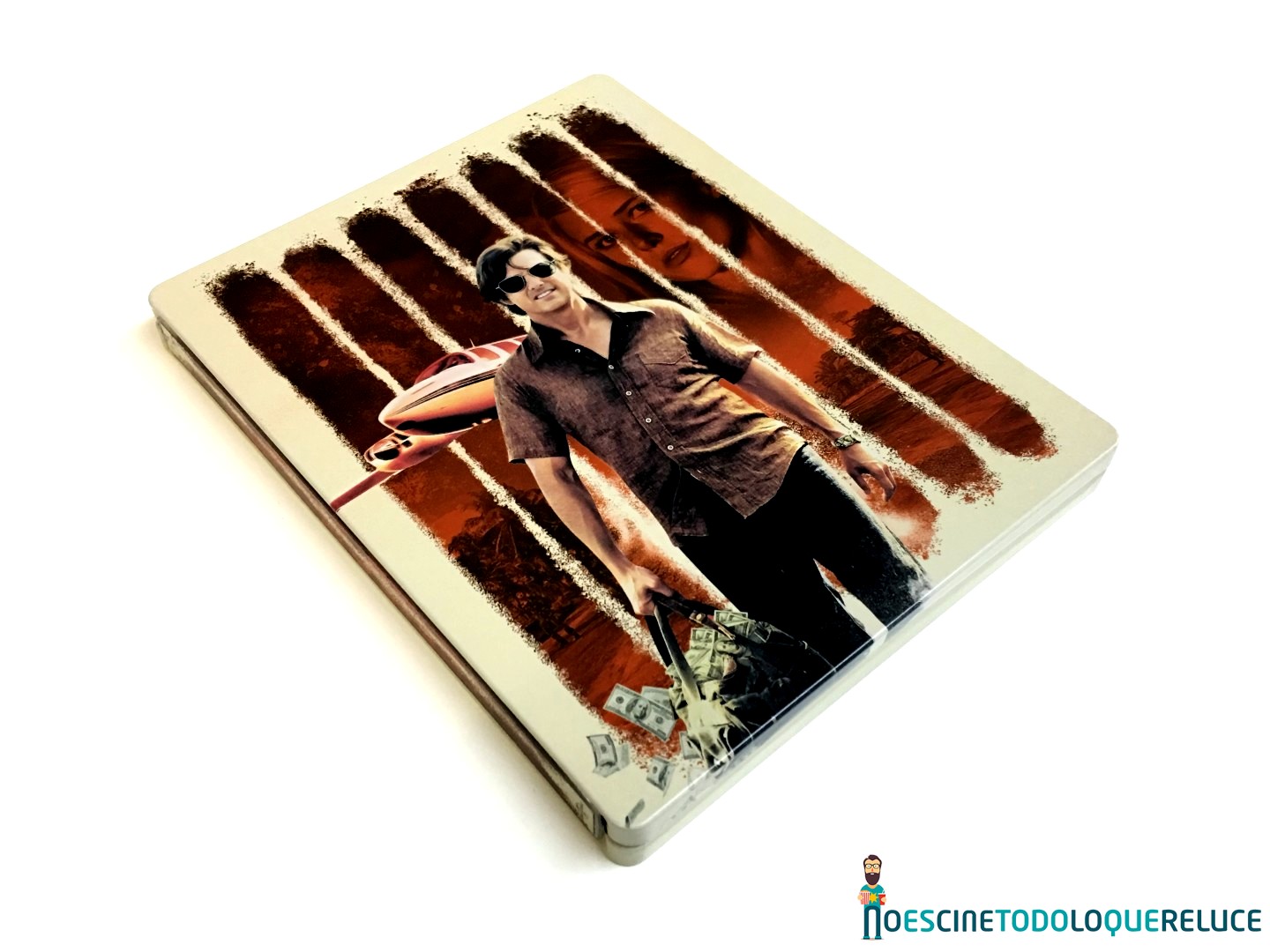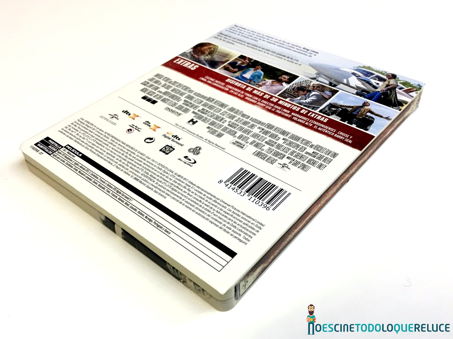 La edición metálica (Blu-ray) de Barry Seal: El traficante está presentada con un acabado mate con detalles barnizados, donde destaca la presencia de Tom Cruise en la portada, delante del relevante avión en el que realiza sus viajes de trabajo, con unas simbólicas rayas que dejan ver la ilustración de fondo, con el rostro de la esposa de Barry Seal. En la contraportada de nuevo tenemos esas rayas que nos dejan ver una ilustración del dinero que acumula el protagonista de la película. Ni en la portada ni en el lomo tenemos el título de la película, viniendo tan sólo en la hoja de características de esta edición que viene pegada al steelbook, y que se despega con facilidad, sin estropear ni el steelbook ni el papel. El interior del estuche metálico incluye otras imagen de la película, con tonos rojos a juego con el resto de la edición, y es donde alberga el disco Blu-ray.