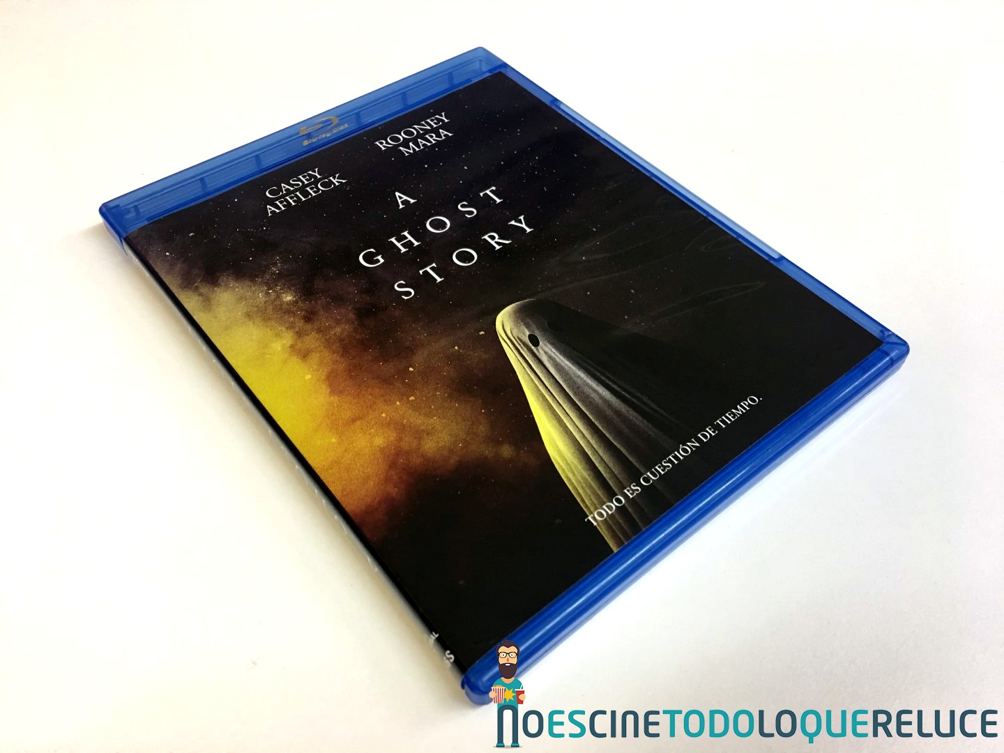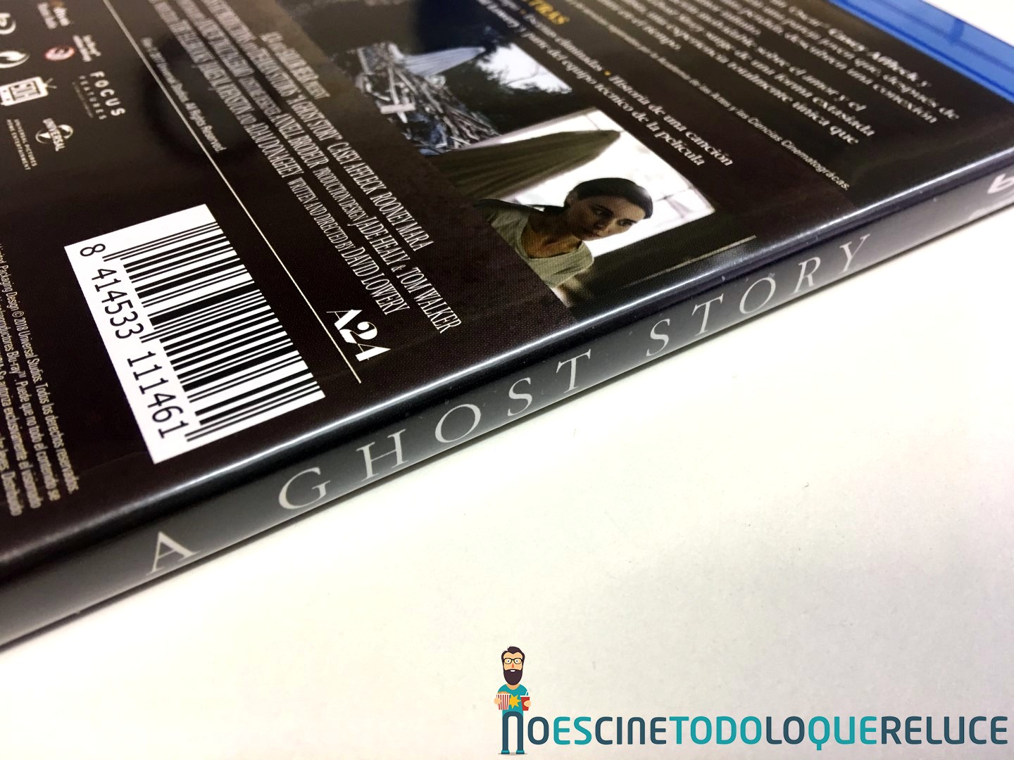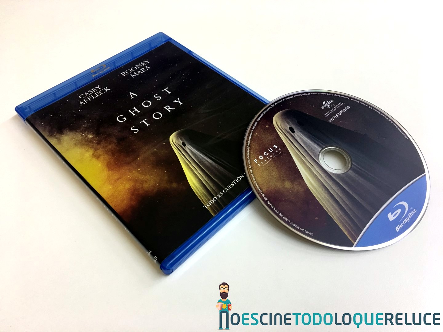 La edición Blu-ray de A Ghost Story está presentada en el clásico estuche amaray azul, que es donde alberga el disco Blu-ray, el cual tiene serigrafiada parte de la ilustración de la portada, sin el título en el mismo.