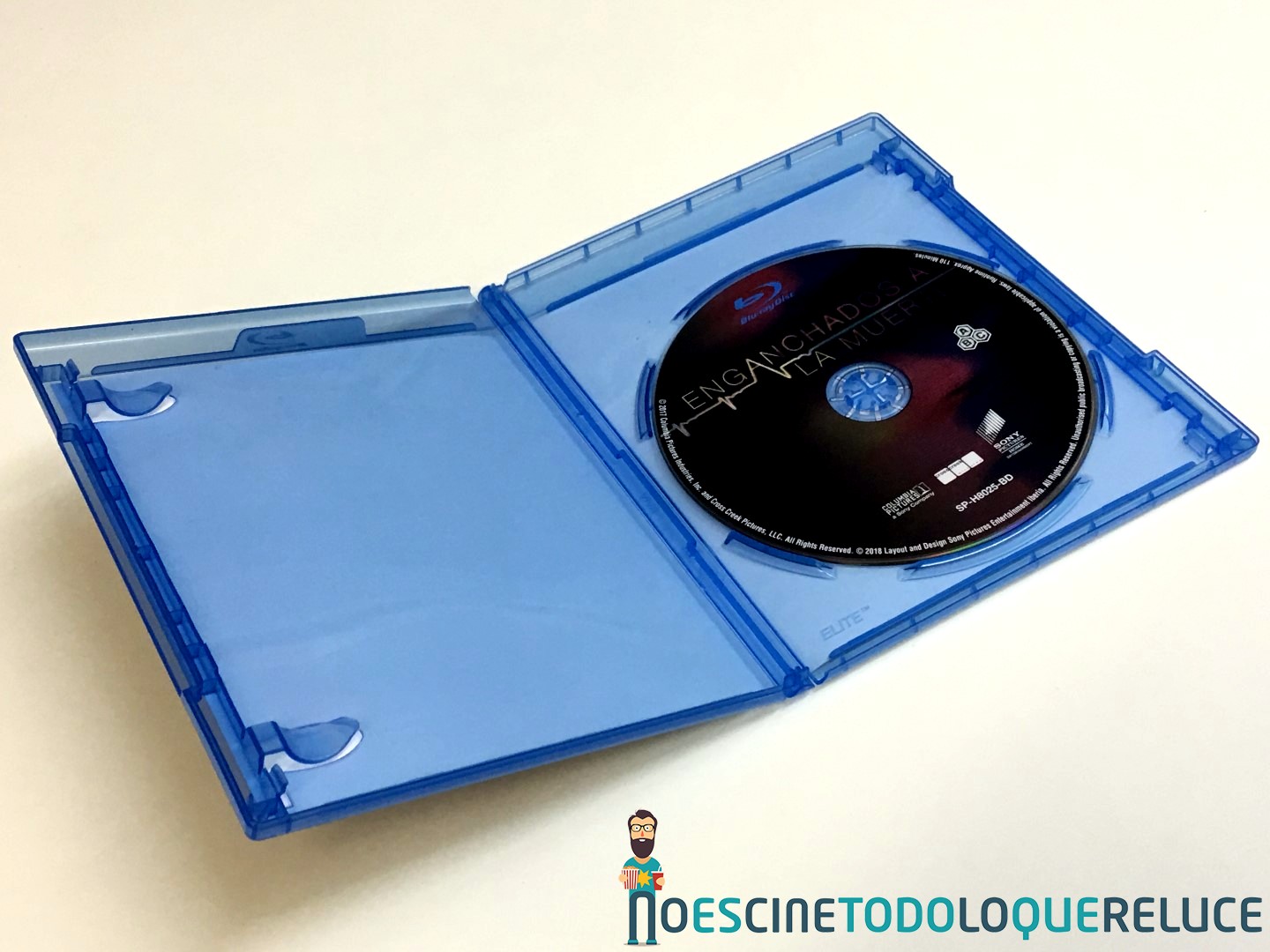 La edición Blu-ray de Enganchados a la muerte está presentada en el clásico estuche amaray azul, que es donde alberga el disco Blu-ray, el cual tiene serigrafiado el título en Español y la línea de la vida.