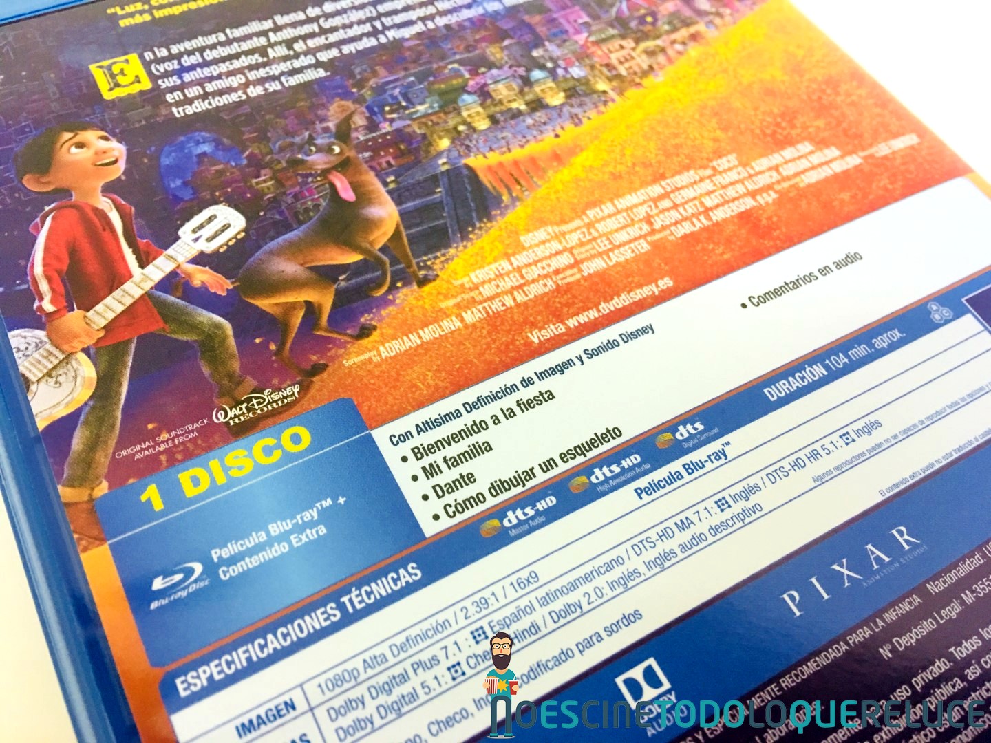 - “Comentarios en audio” (1h 44min 53seg) (Audio: Inglés) (Subtítulos: Castellano, Inglés codificado para sordos). Presentado por Lee Unkrich (director), Adrián Molina (codirector) y Darla K. Anderson (productora).