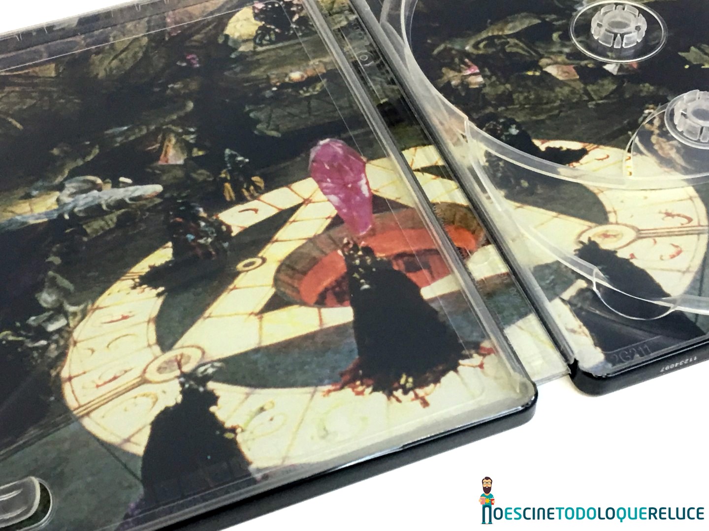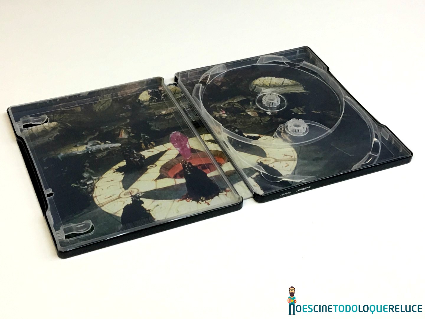 La edición de Cristal Oscuro que ha salido en 4K UHD y Blu-ray está presentada en un Steelbook precioso, de los que merecen la pena estar en cualquier colección, con bellas ilustraciones y acabados de calidad. Sin necesidad de relieves, los brillos y el diseño exterior es suficiente para que nos enamore. El frontal del Steelbook nos presenta el póster empleado para la promoción en cines de la película, mientras que la trasera incluye otra ilustración, oculta tras el papel con la información técnica y artística de la misma. Pero tampoco queda atrás el interior, donde también se ha incorporado una imagen de la película, justo donde alberga los dos discos, uno de ellos con el título en Español y el correspondiente al 4K UHD en Inglés, tal y como podéis ver tanto en el vídeo como en la galería de fotos que acompaña este análisis. Y si se han cuidado los detalles del «packaging», no menos cuidado es el diseño interior de los discos, pues incluye variados menús, muy coloridos y repletos de vida..