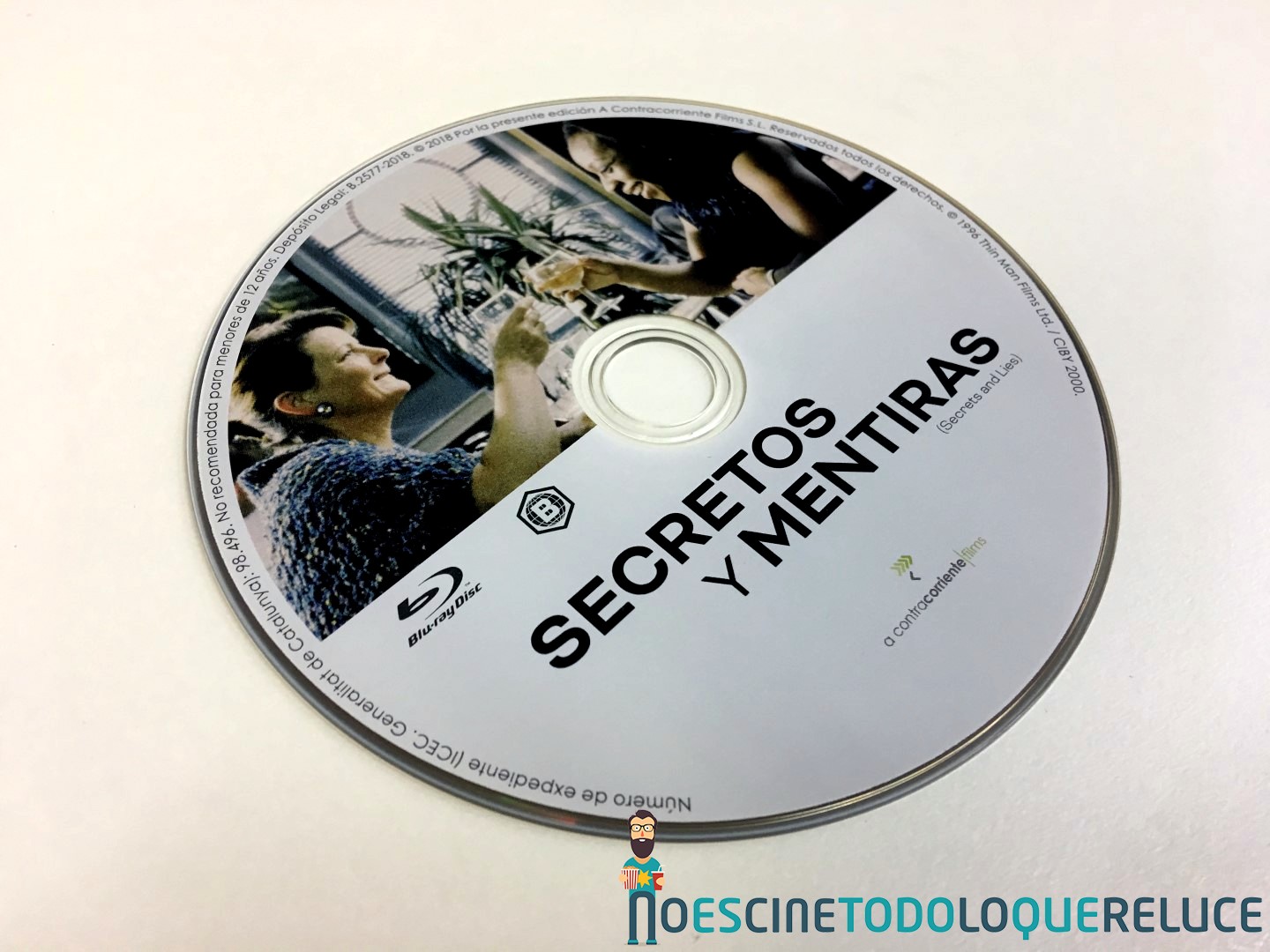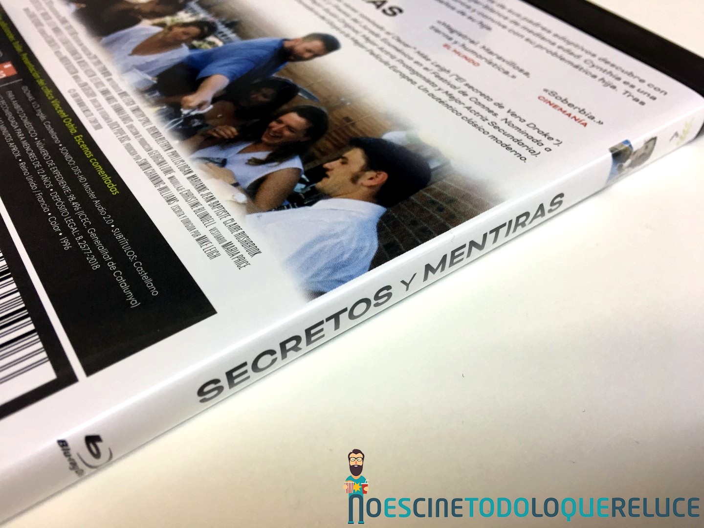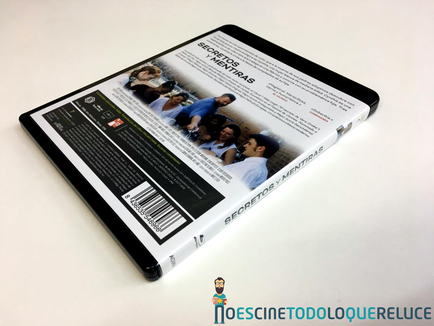 La edición Blu-ray de Secretos y mentiras está presentada en un estuche amaray negro, para que contraste con el blanco de la portada, que es donde alberga el disco Blu-ray, el cual tiene serigrafiada la parte más significativa de la portada, con el título en español.