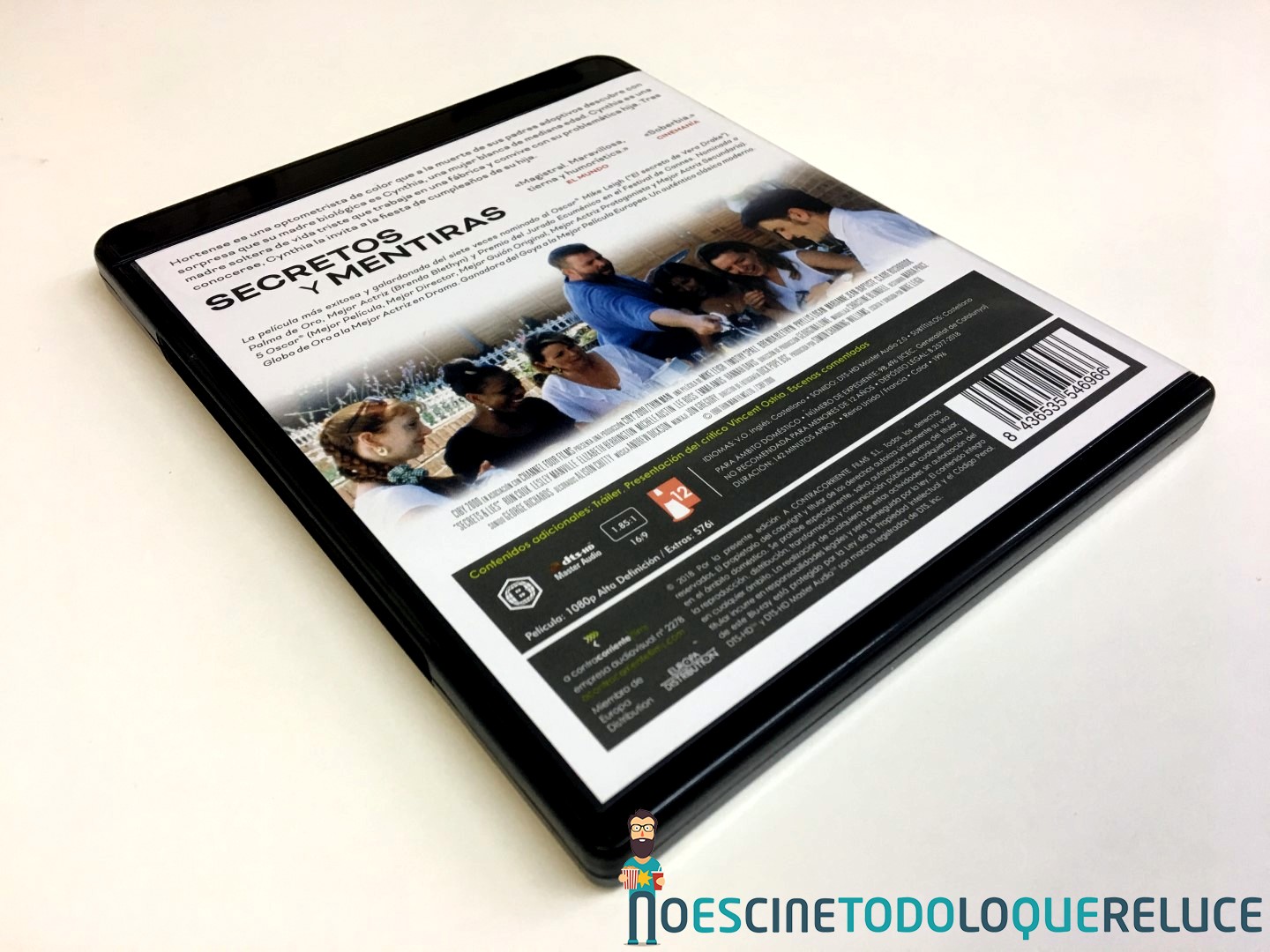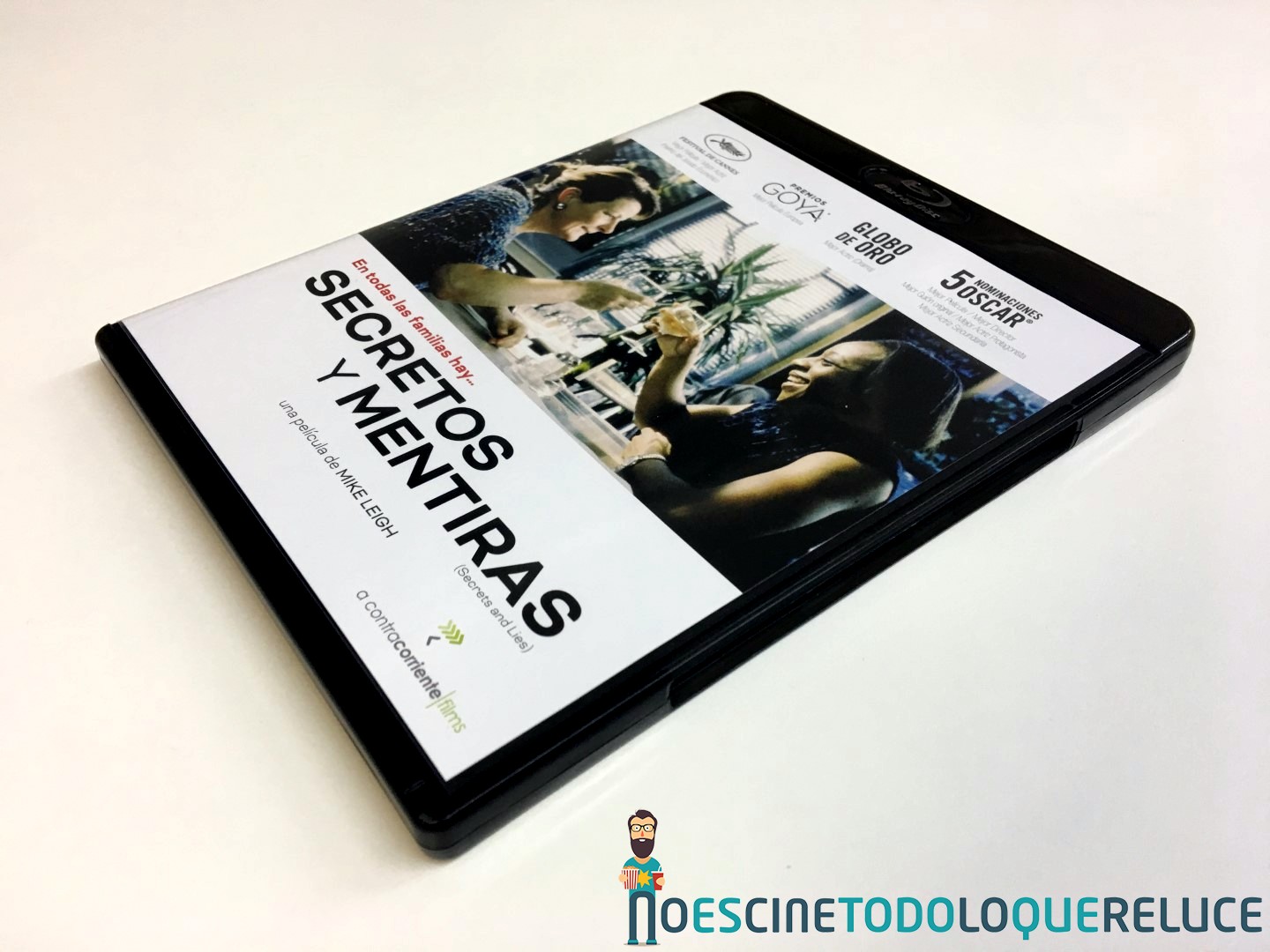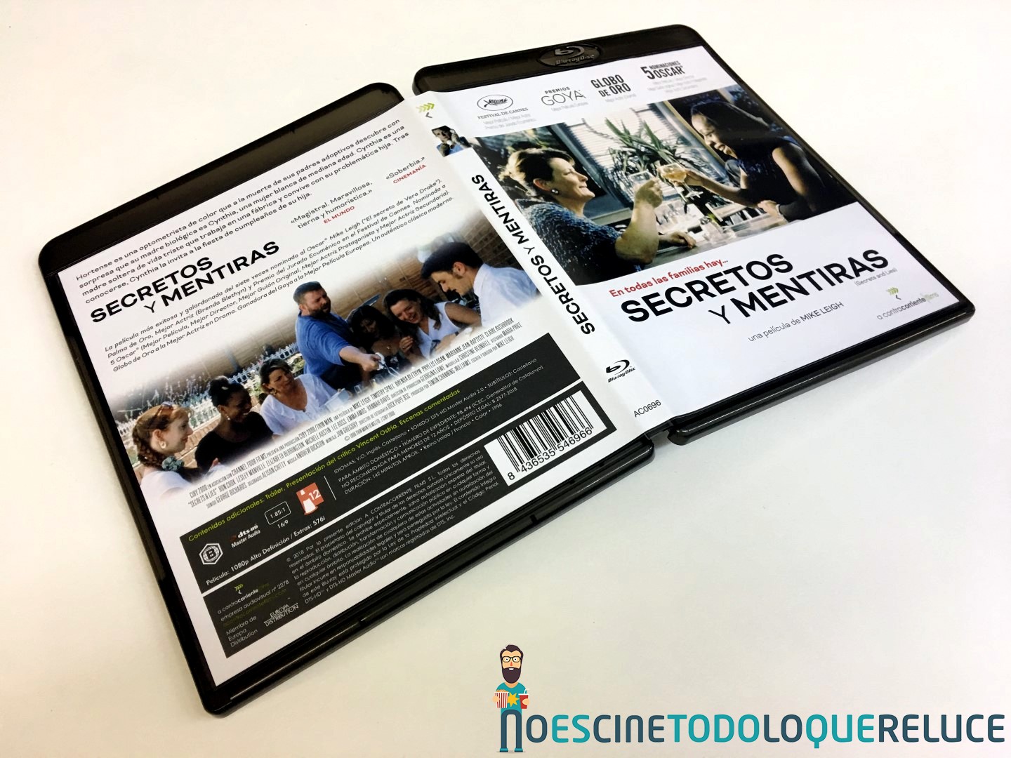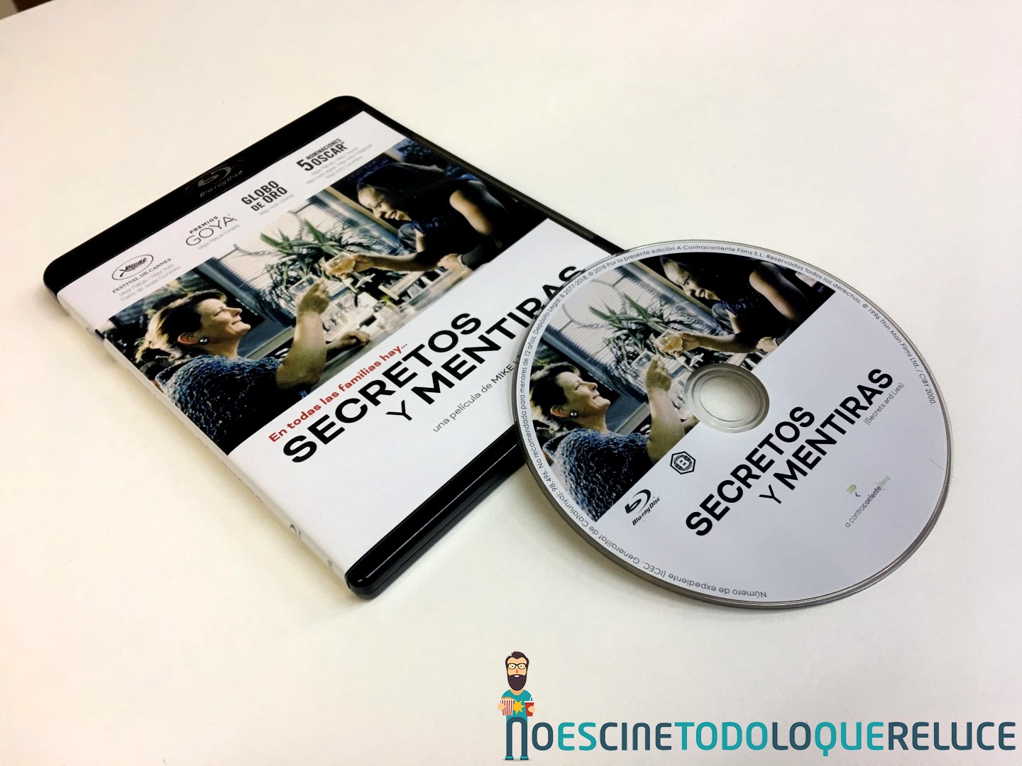 La edición Blu-ray de Secretos y mentiras está presentada en un estuche amaray negro, para que contraste con el blanco de la portada, que es donde alberga el disco Blu-ray, el cual tiene serigrafiada la parte más significativa de la portada, con el título en español.