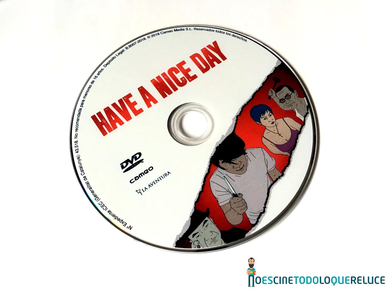 La edición DVD de Have a nice day está presentada en un estuche amaray blanco perfecto para no desentonar con el póster blanco y rojo de la película que acapara la portada, mientras que la parte trasera, con el blanco predominante, nos ofrece datos técnicos, artísticos, sinópsis y algunas imágenes de la película. El disco DVD también a juego se ilustra con parte del póster de la película.