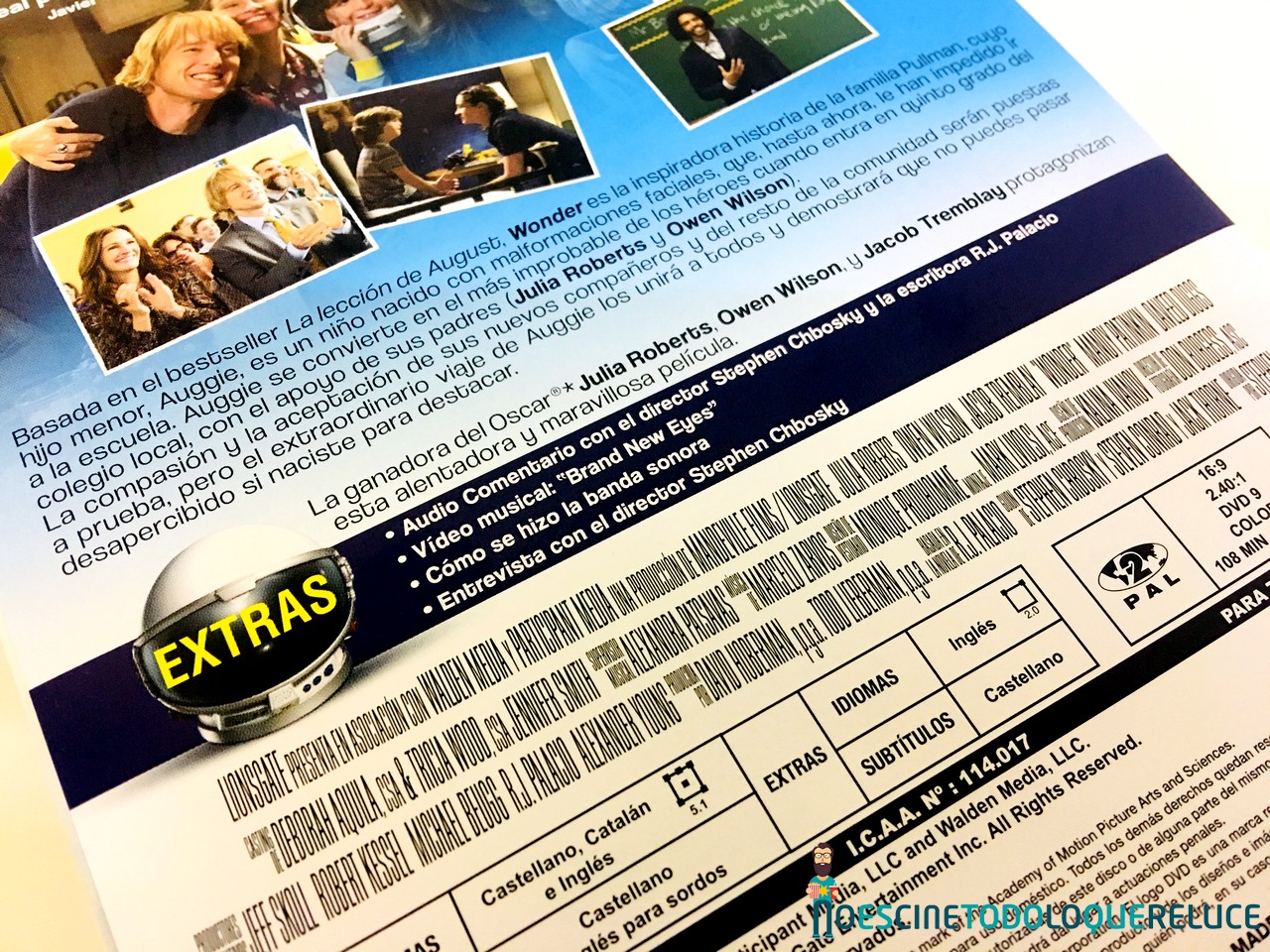 - Audiocomentario con el director Stephen Chbosky y la escritora R.J. Palacio. Durante toda la reproducción de la película podemos escuchar la voz en off del director y la escritora de la novela.