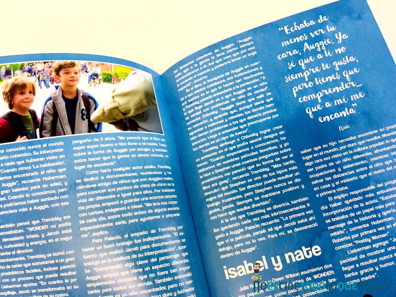 Wonder se basa en la novela “Wonder. La lección de August”, de la escritora R.J. Palacio, que ha sido una de las revelaciones editoriales de los últimos tiempos, con más de 5 millones de lectores, siendo lectura recomendada en muchos colegios, calificado como “El antídoto contra el bullying”.