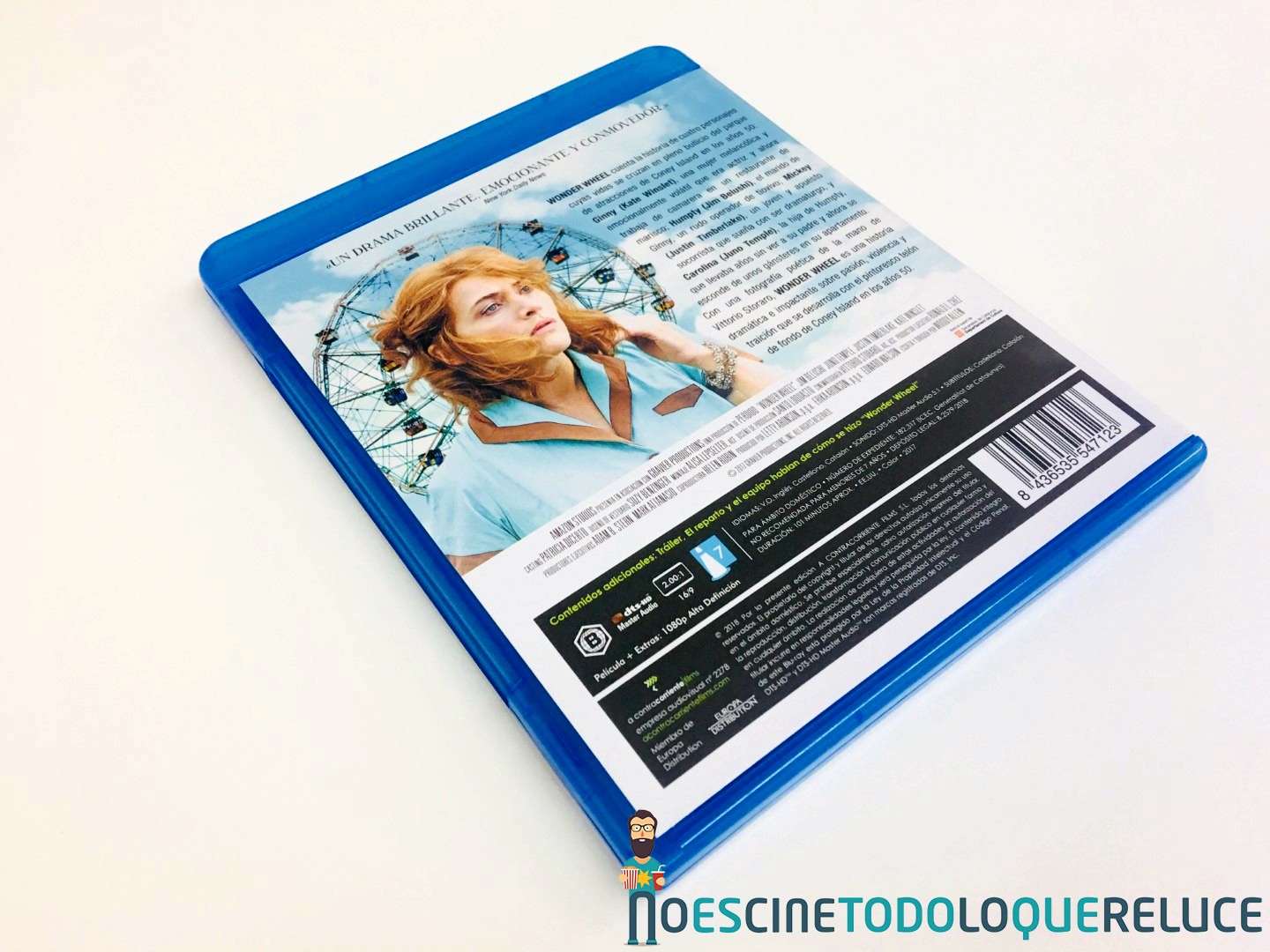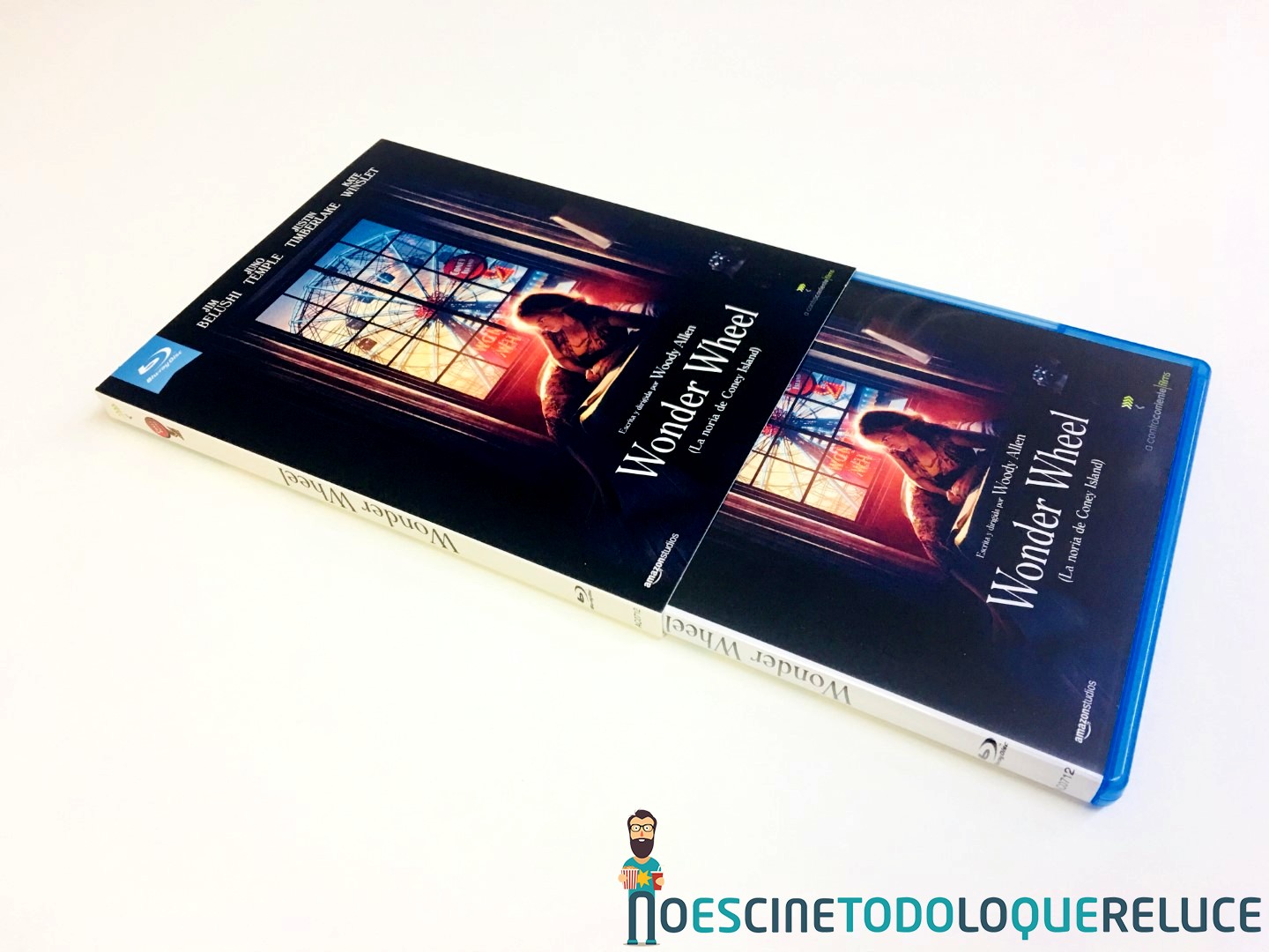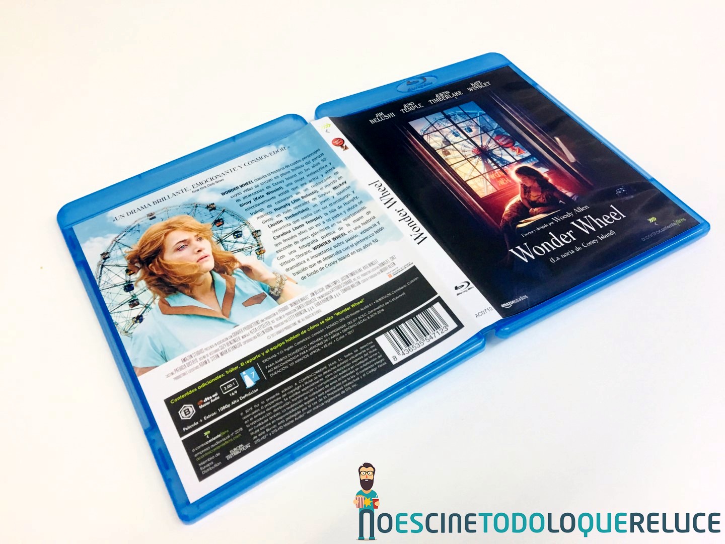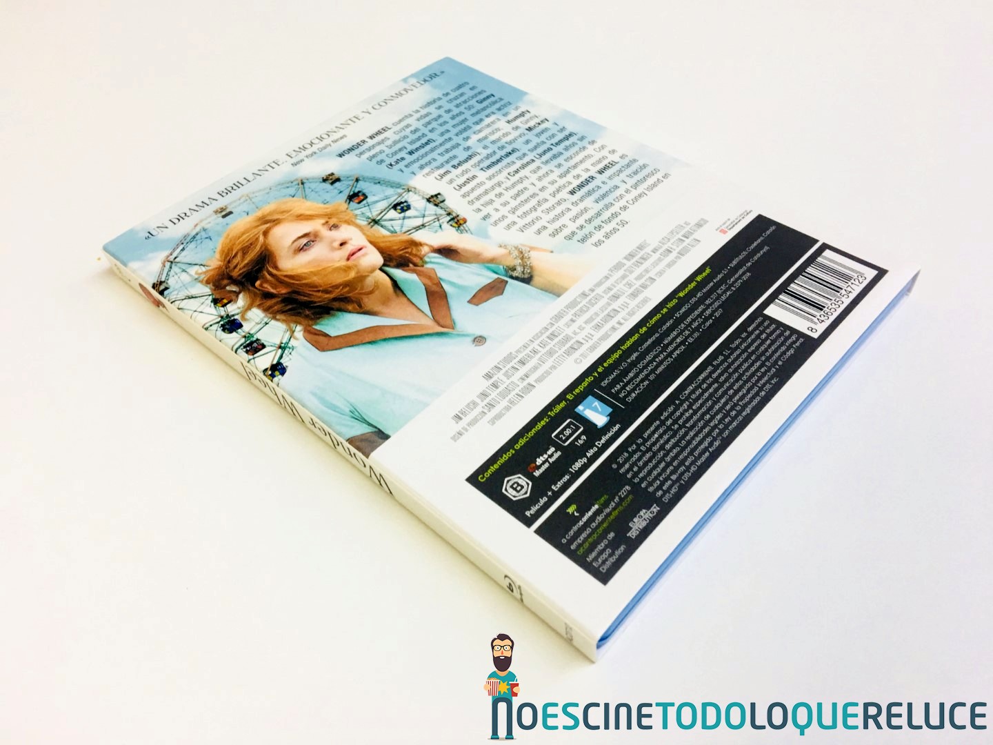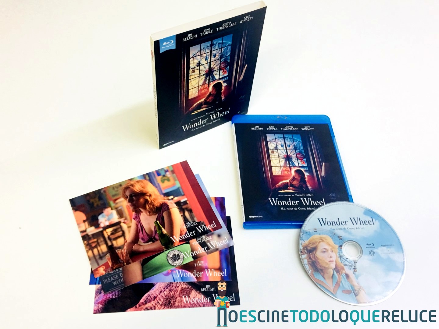 La edición Blu-ray exclusiva de Fnac de Wonder Wheel está presentada en un estuche azul protegido por una funda de color mate ilustrada en su portada con el bello póster de la película, que se repite en el estuche interior. En la contraportada (tanto de funda como de estuche) tenemos a Kate Winslet acompañando la sinopsis y datos técnicos del Blu-ray. Esta imagen de la contraportada es la que ilustra el disco Blu-ray interior, además de encontrarnos con 4 postales de la película, una por cada protagonista.