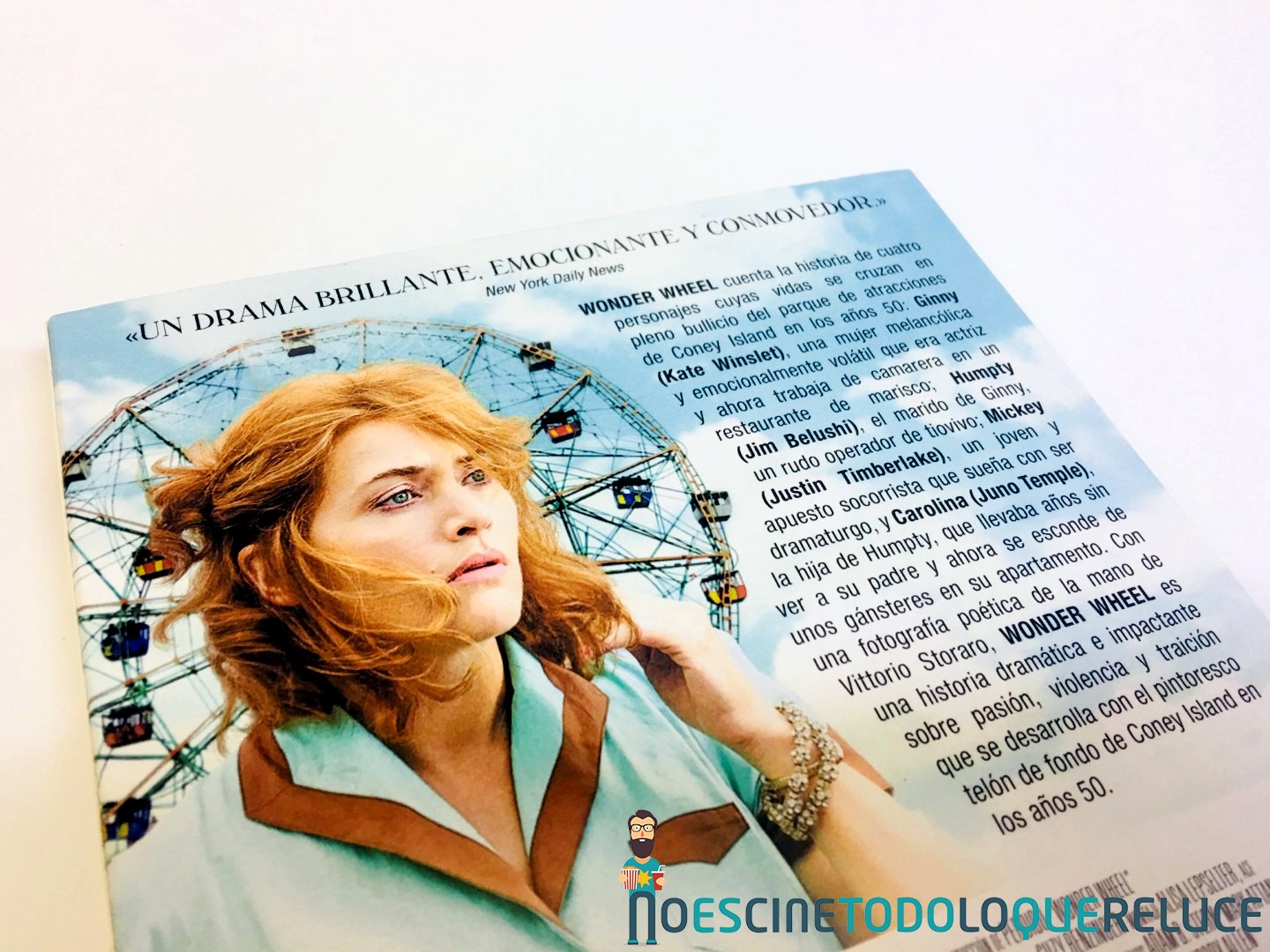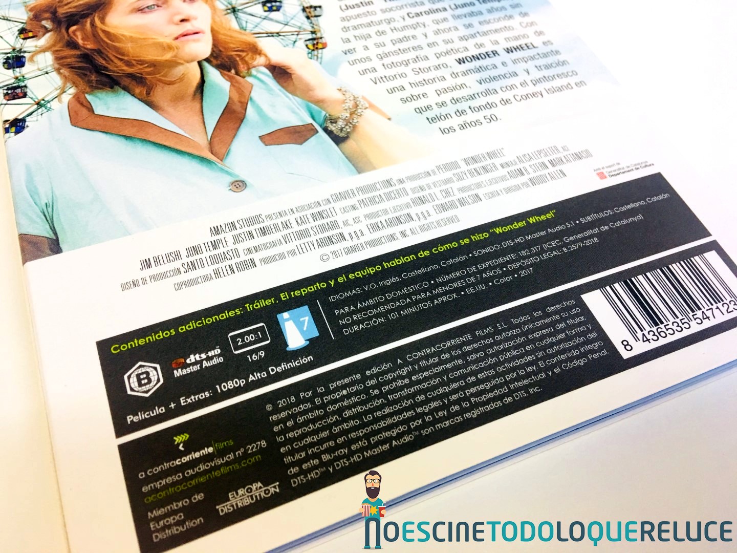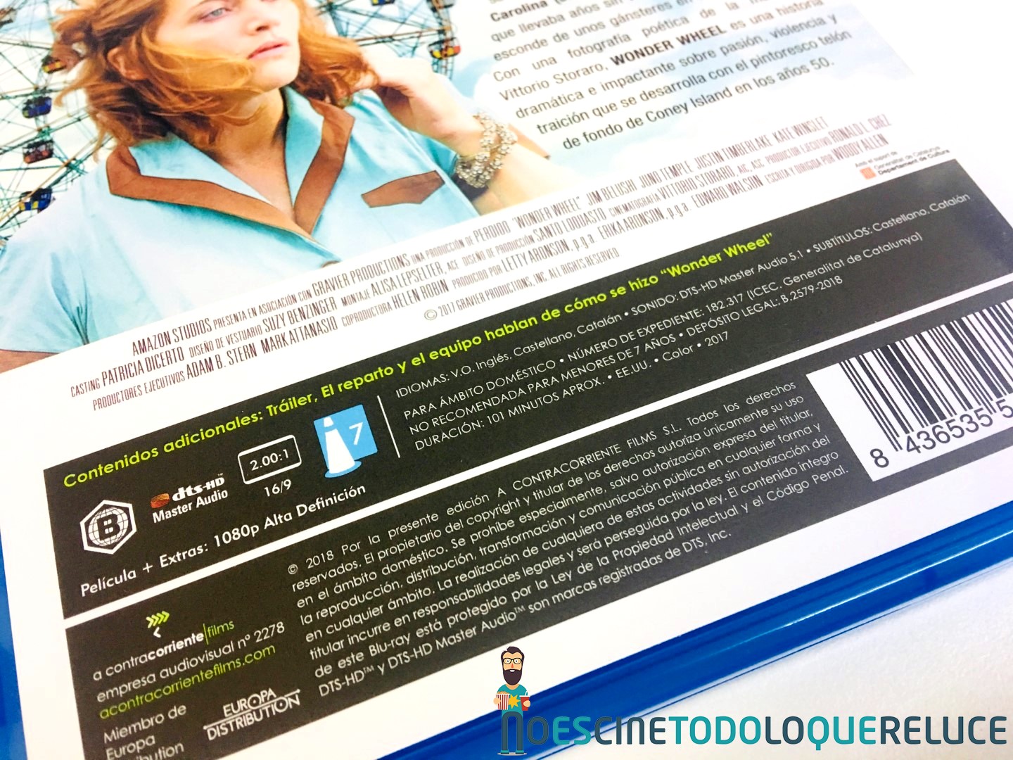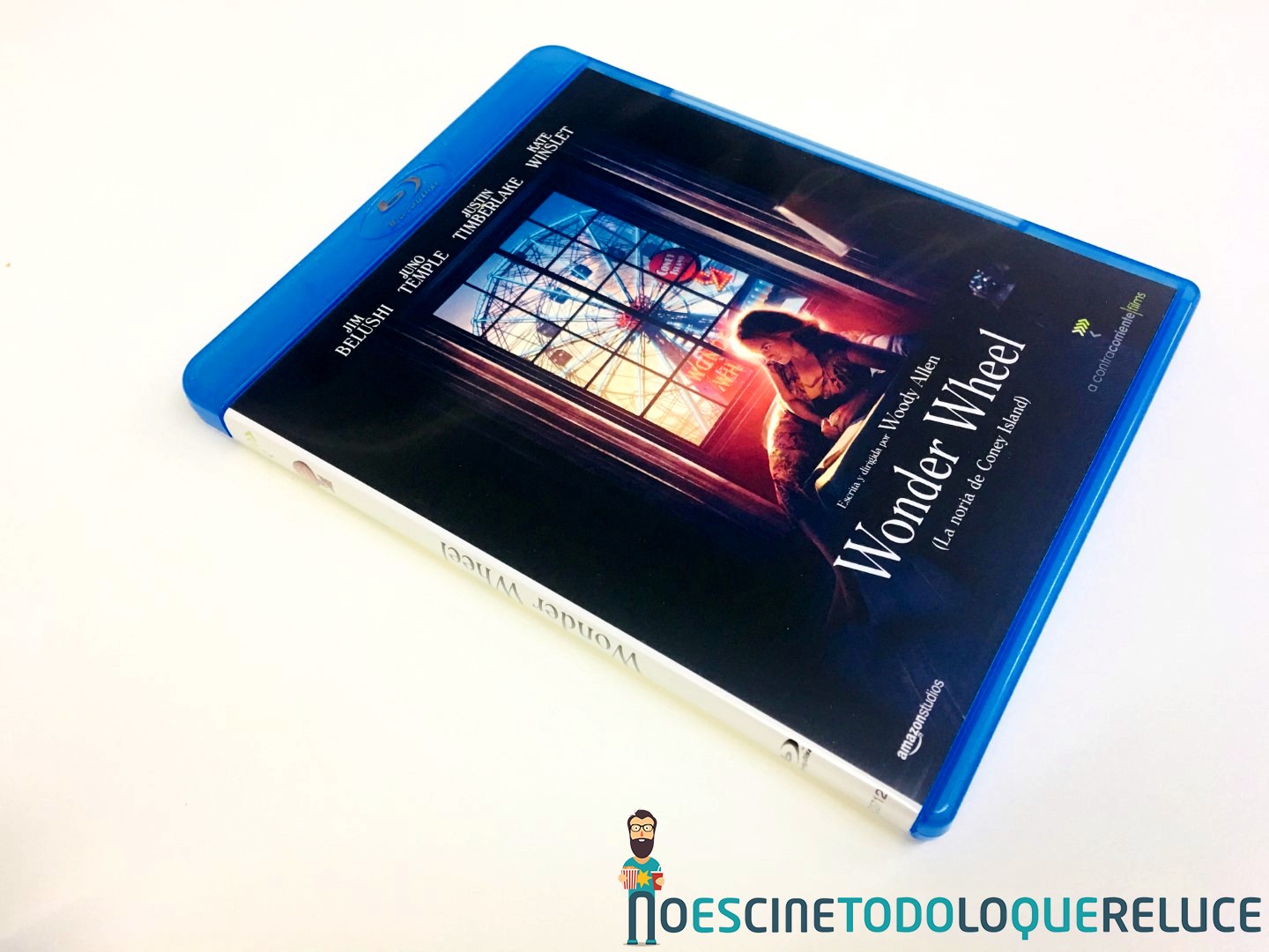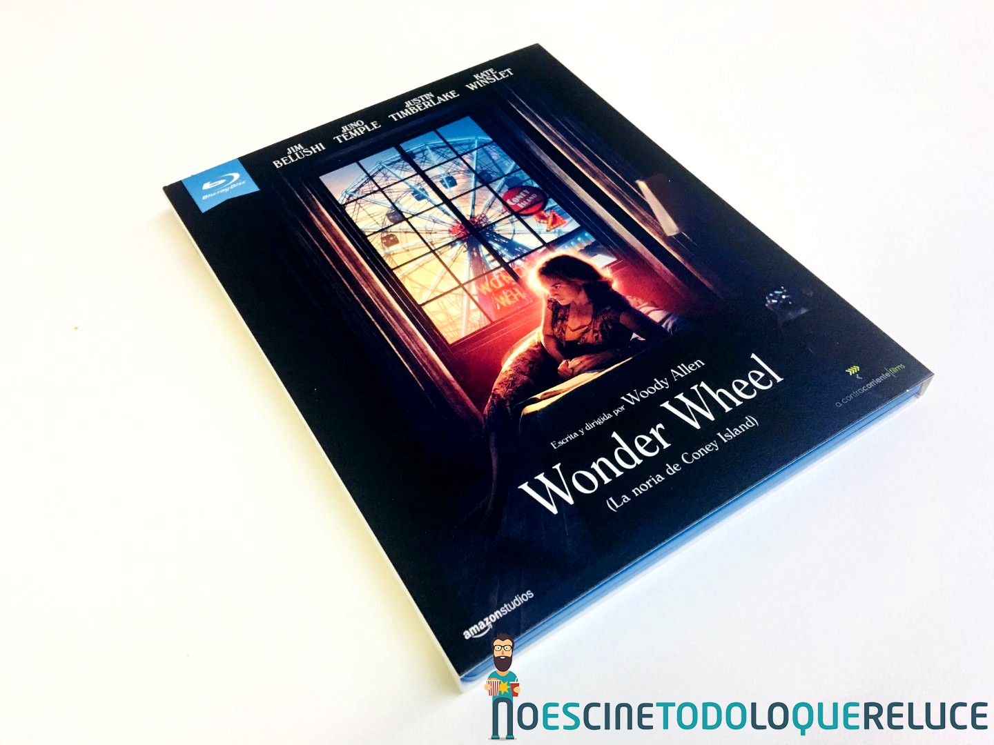 La edición Blu-ray exclusiva de Fnac de Wonder Wheel está presentada en un estuche azul protegido por una funda de color mate ilustrada en su portada con el bello póster de la película, que se repite en el estuche interior. En la contraportada (tanto de funda como de estuche) tenemos a Kate Winslet acompañando la sinopsis y datos técnicos del Blu-ray. Esta imagen de la contraportada es la que ilustra el disco Blu-ray interior, además de encontrarnos con 4 postales de la película, una por cada protagonista.