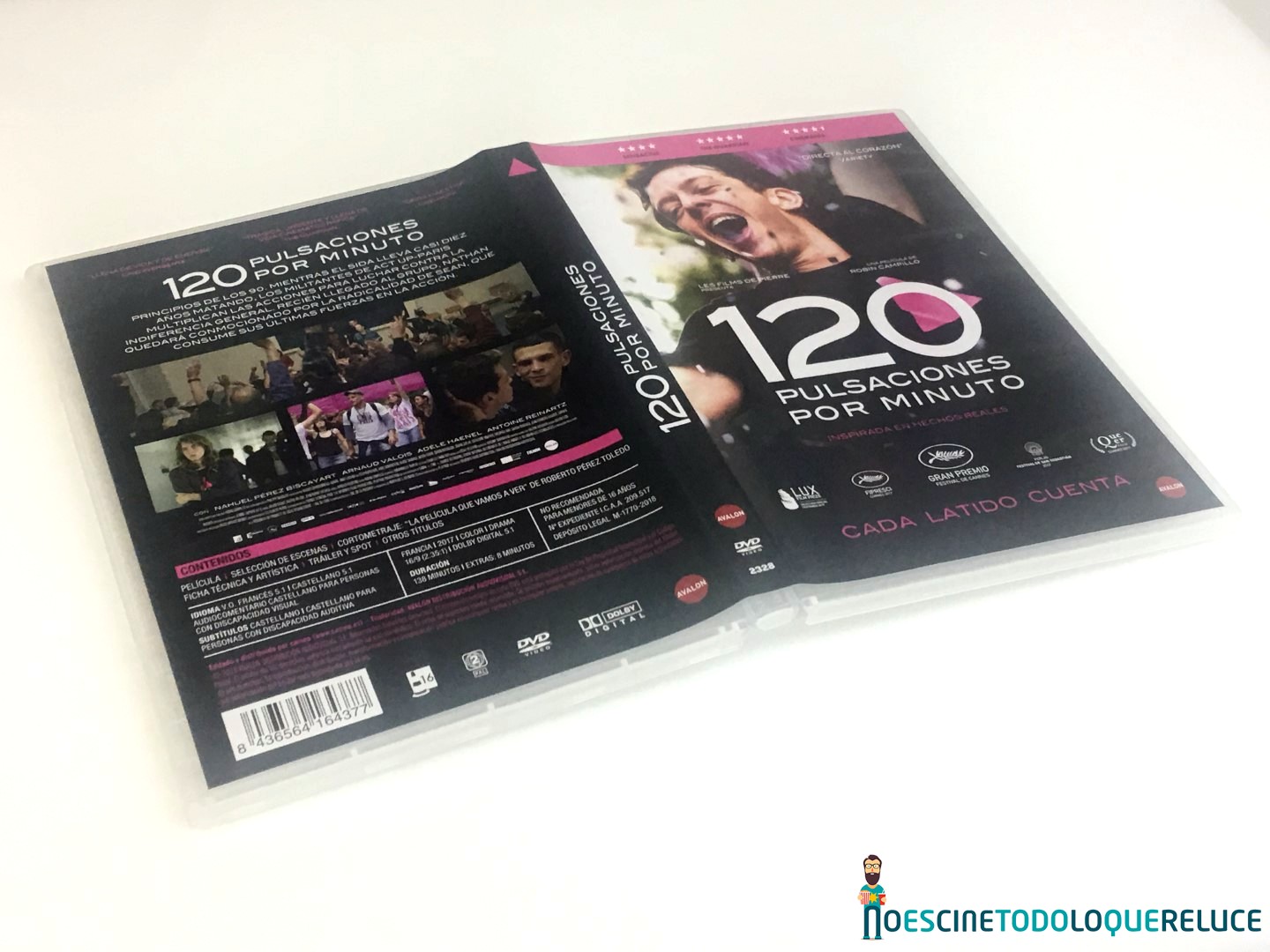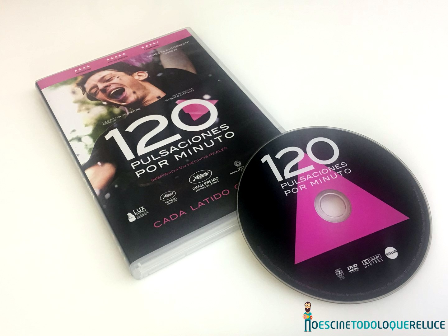 La edición DVD de 120 pulsaciones por minuto está presentada en un estuche amaray blanco translúcido, con el icónico póster oficial de la película como portada, destacando los tonos negros y rosas, y los datos técnicos, artísticos, sinópsis y algunas imágenes de la película en la contraportada. El disco DVD se ilustra con el título en español, junto con un triángulo rosa sobre el fondo negro, muy simbólico pues, en 1980, Act Up (Aids Coalition to Unleash Power, que en español significa «Coalición contra el sida para la liberación») adoptó el triángulo rosa para simbolizar la lucha activa en contra de la enfermedad del sida en lugar de la «pasiva resignación del destino».
