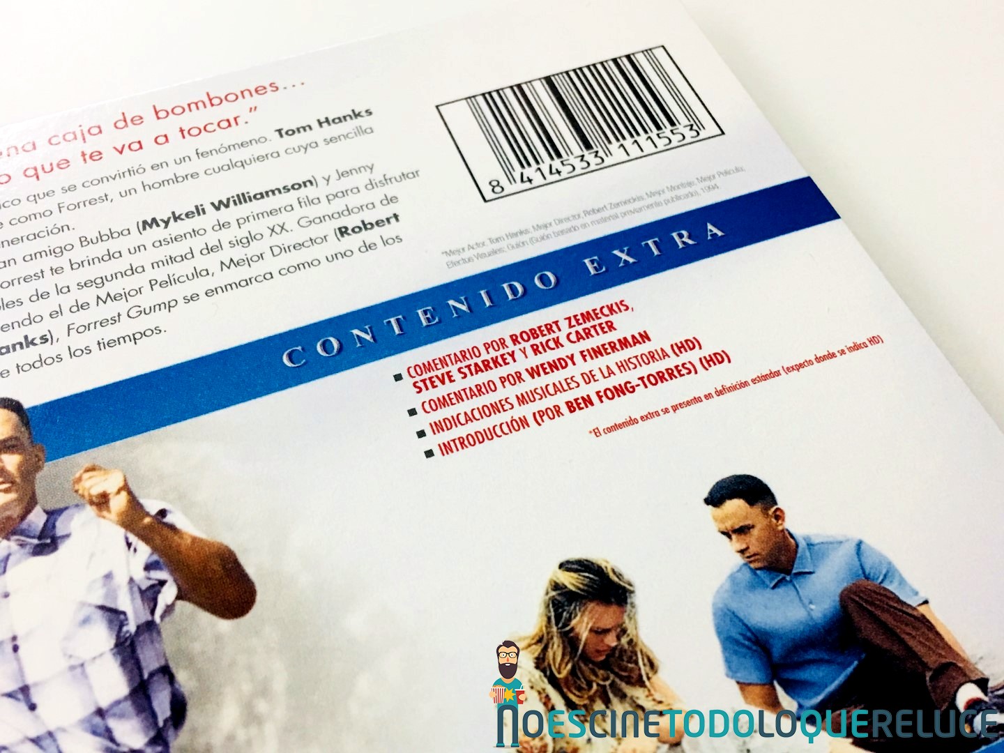A nivel de contenido adicional, a pesar de ser un sólo disco, incluye dos pistas de audiocomentarios, así como un largo extra titulado «Indicaciones musicales de la historia» presentado por el periodista de Rock Ben Fong-Torres, a quien acompañan el director Robert Zemeckis y el supervisor musical Joel Sill para hablar sobre la banda sonora y la partitura de Forrest Gump y cómo las canciones populares coinciden con las escenas que acompañan.
