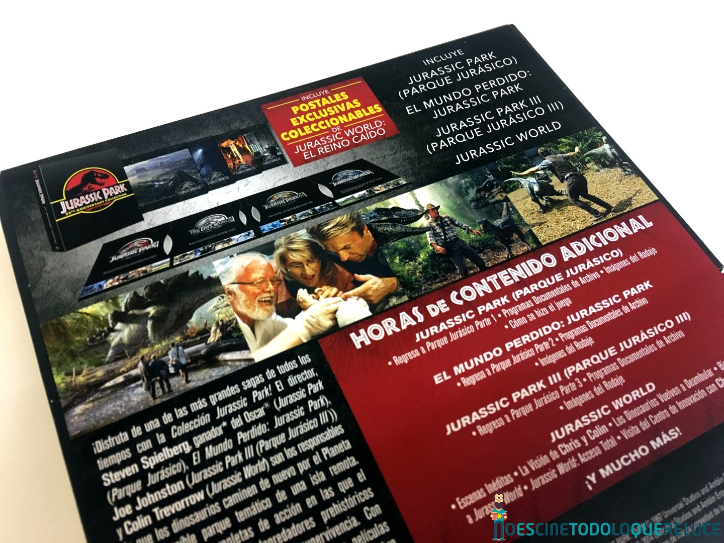 Con este pack podemos disfrutar de nuevo de Parque Jurásico y Jurassic Park: el mundo perdido (ambas de Steven Spielberg), Parque Jurásico III (firmada por Joe Johnston) y Jurassic World (dirigida por Colin Trevorrow), así como de las horas de contenido extra que incluyen los discos Blu-ray de estas películas, desde programas documentales de archivo a piezas de making of, imágenes de los rodajes o escenas inéditas. Y como en Sony piensan en todo, este pack se completa con postales coleccionables de Jurassic World: El reino caído para que se nos haga más corta la espera hasta la fecha de lanzamiento de esta película en DVD y formatos de Alta (y Ultra Alta) Definición.