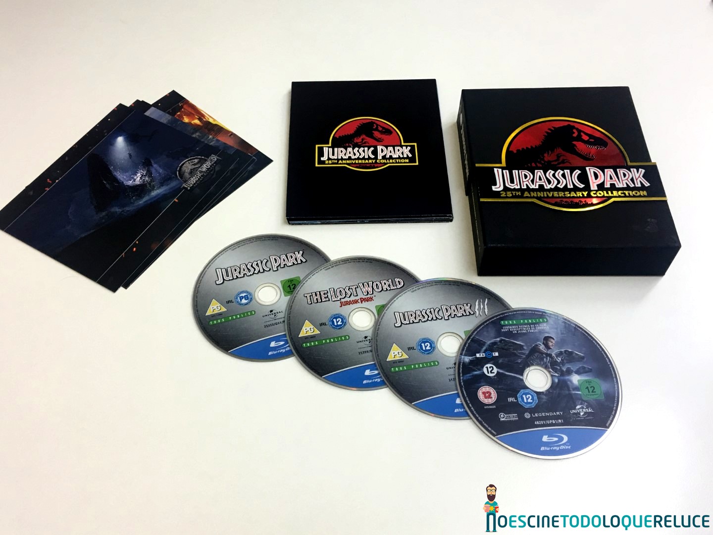 Para conmemorar este cuarto de siglo, Sony Pictures Home Entertainment España ha lanzado nuevas ediciones físicas para todos los gustos y en todo tipo de formatos, que incluye las primeras versiones en Ultra Alta Definición de estas cuatro películas, así como reediciones en Blu-ray y DVD con carátulas rediseñadas y la joya de la corona, un pack coleccionista 25º aniversario con las cuatro primeras entregas en Blu-ray (Parque Jurásico, Jurassic Park: el mundo perdido, Parque Jurásico III y Jurassic World), que es la edición que aquí tenemos la fortuna de detallar y de la que os ofrecemos un unboxing y un reportaje fotográfico.