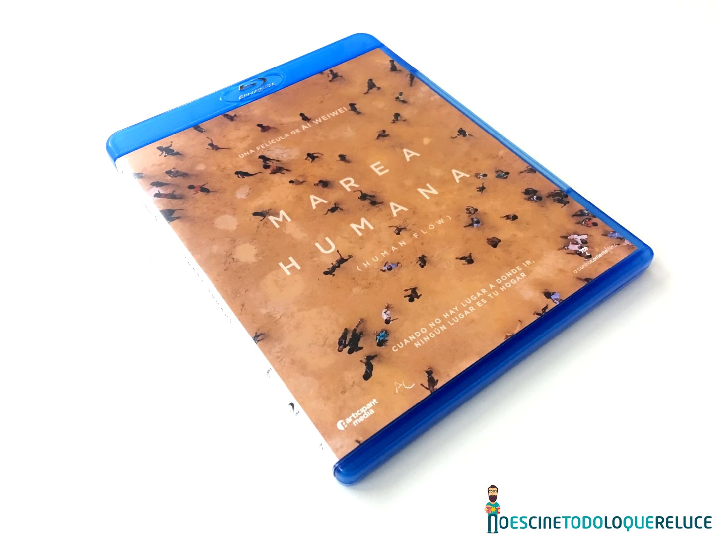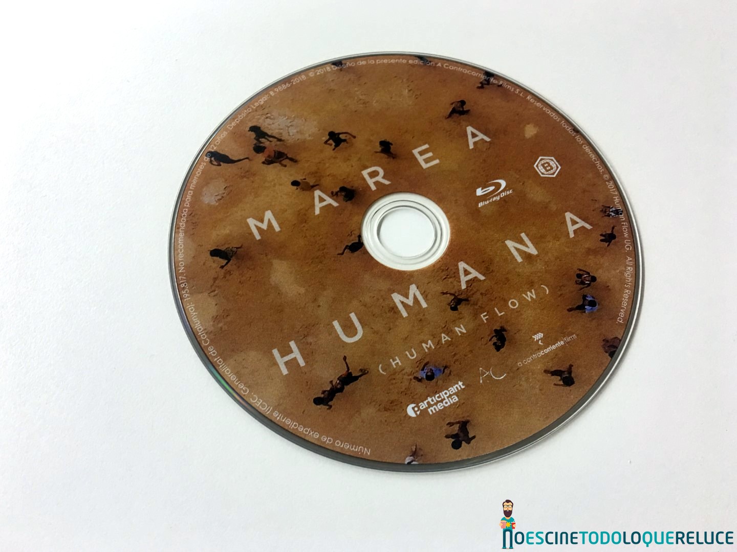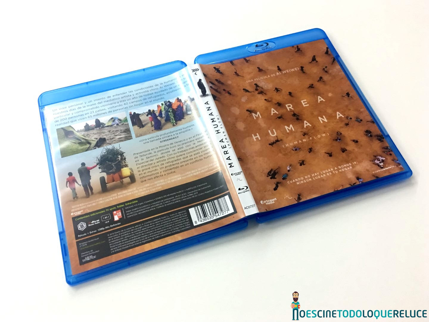 La edición Blu-ray de Marea Humana (Human Flow) está presentada en un estuche azul, habitual de este formato, con el póster oficial en la portada, mientras que la contraportada nos presenta algunas fotos junto a los datos técnicos, artísticos y sinopsis. El disco Blu-ray incluye la imagen de la portada con el título en español.