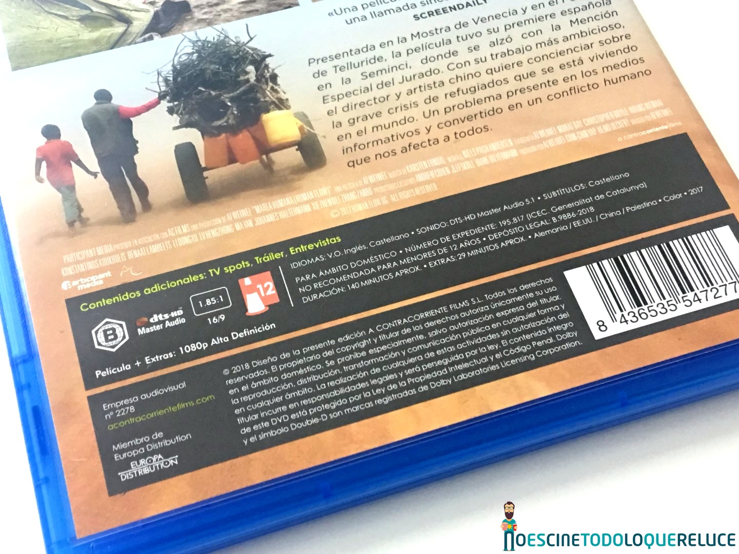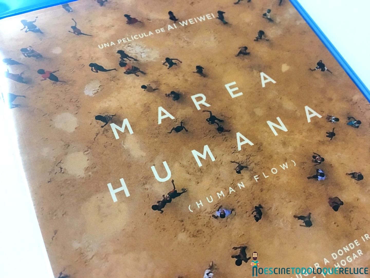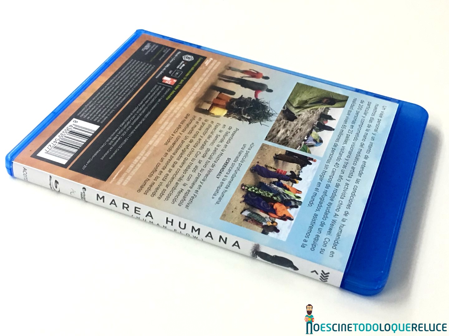 La edición Blu-ray de Marea Humana (Human Flow) está presentada en un estuche azul, habitual de este formato, con el póster oficial en la portada, mientras que la contraportada nos presenta algunas fotos junto a los datos técnicos, artísticos y sinopsis. El disco Blu-ray incluye la imagen de la portada con el título en español.