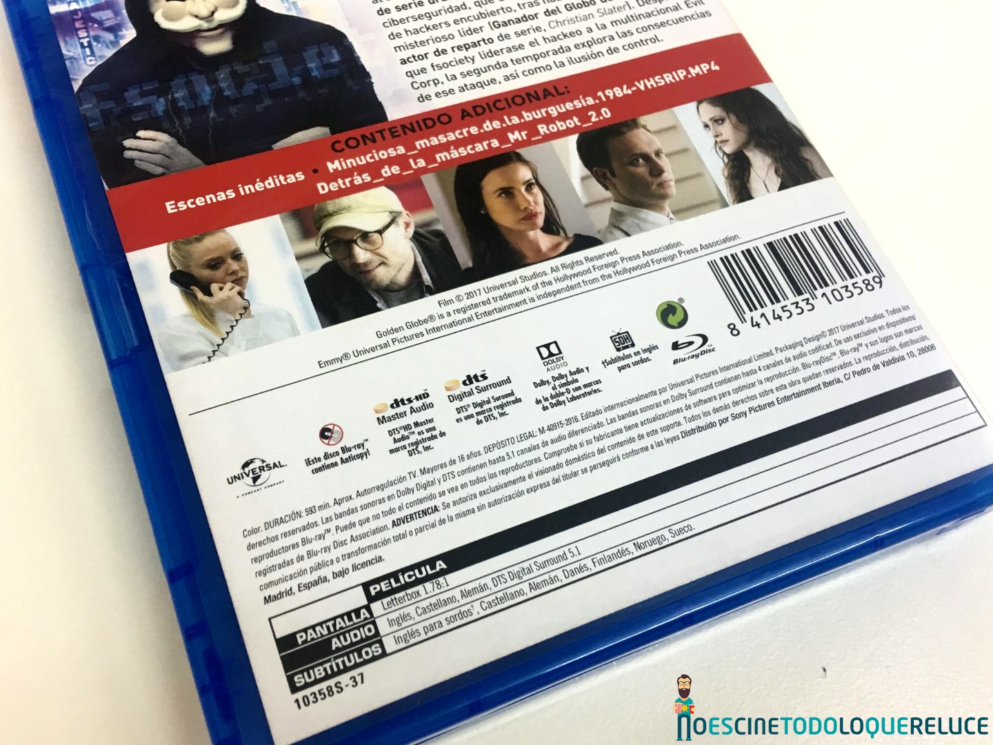 La edición de Mr. Robot que comentamos incluye las tres primeras temporadas distribuidas en 8 discos Blu-ray con una relación de aspecto de 1.78:1, con una calidad sobresaliente, tal y como cabía esperar para una serie actual.