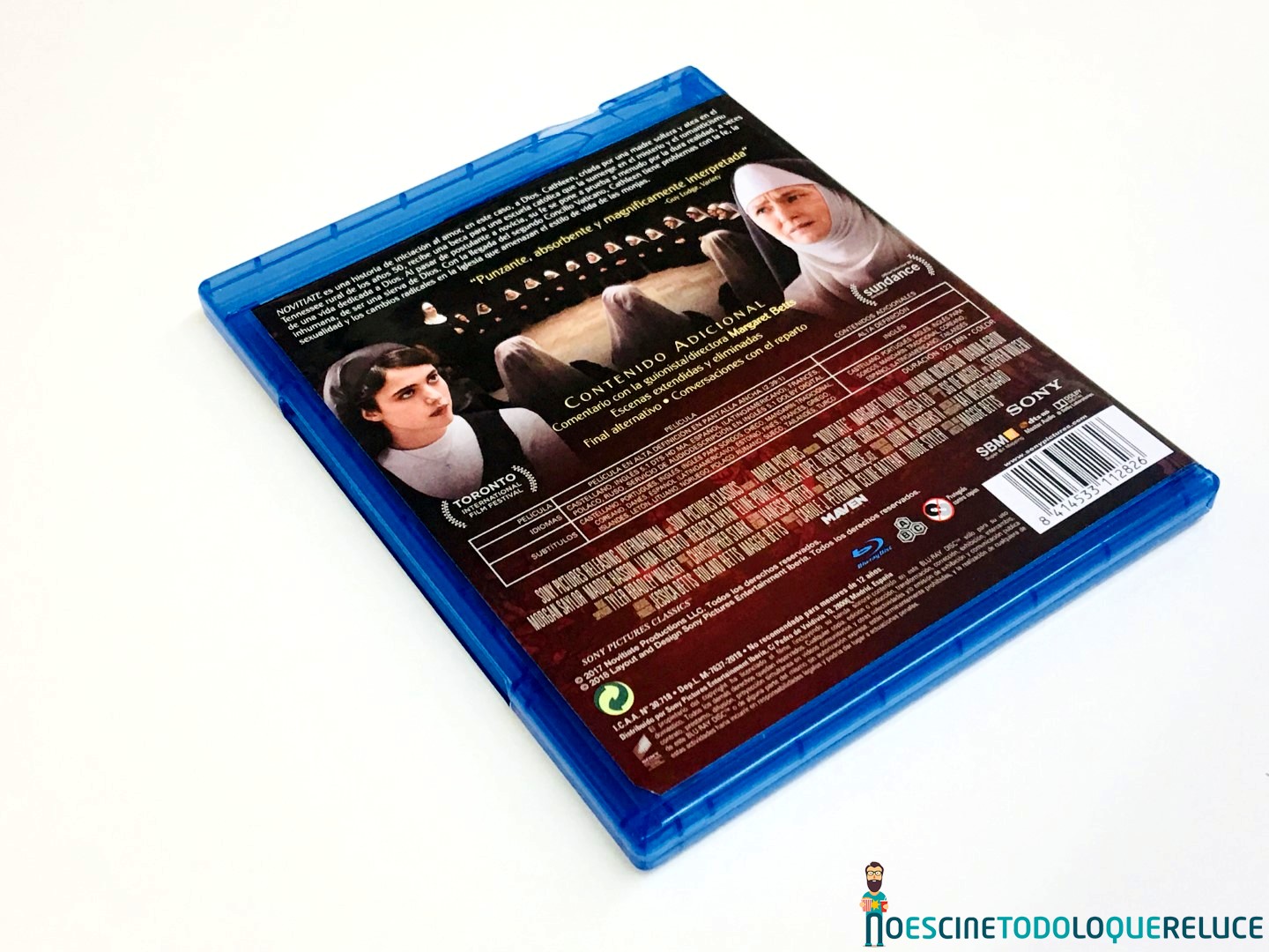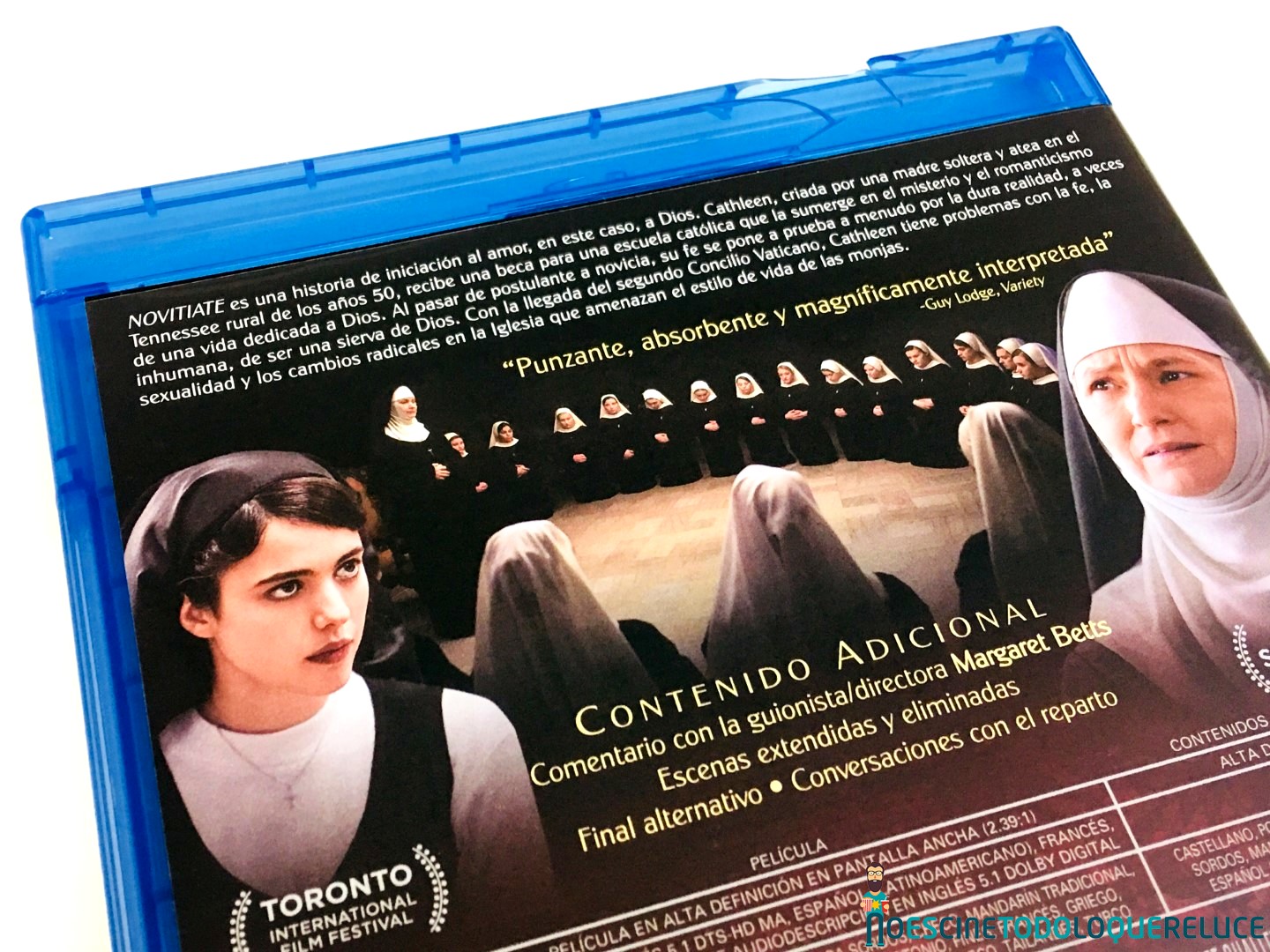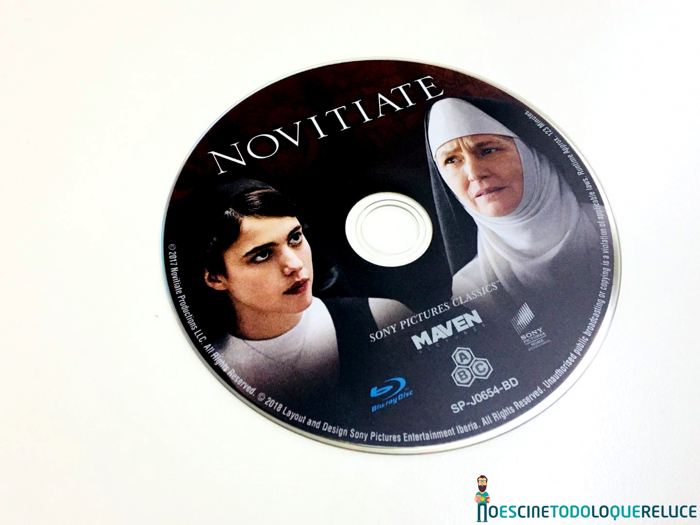 La edición Blu-ray de Novitiate está presentada en un estuche azul, habitual de este formato, con el póster de la película en la portada, predominando los tonos oscuros al igual que en la contraportada, donde junto a los datos técnicos, artísticos y sinopsis nos presentan los rostros de las dos protagonistas principales y una foto de todas las monjas juntas. El disco Blu-ray incluye en la serigrafía la imagen de las protagonistas junto al título de la película.