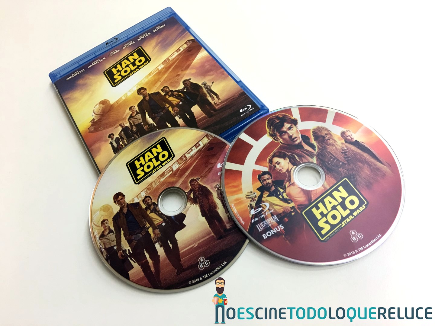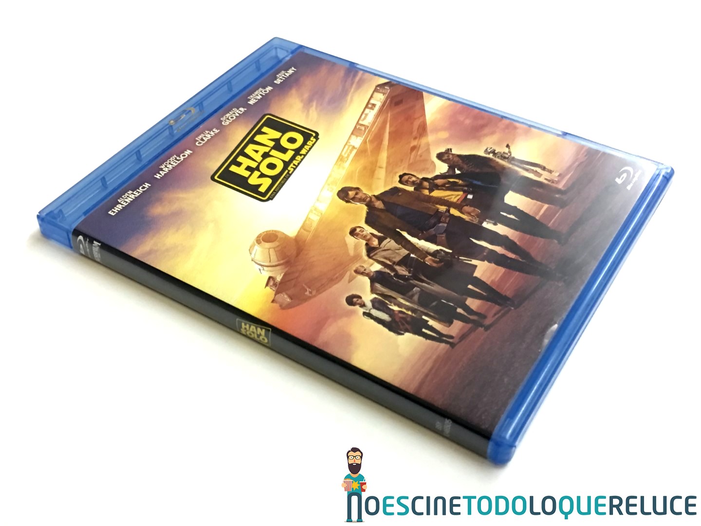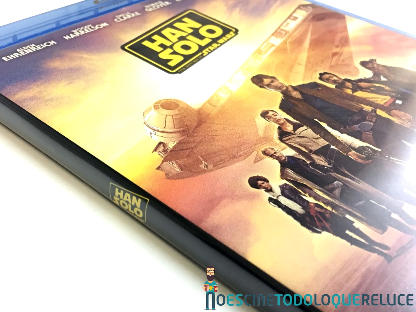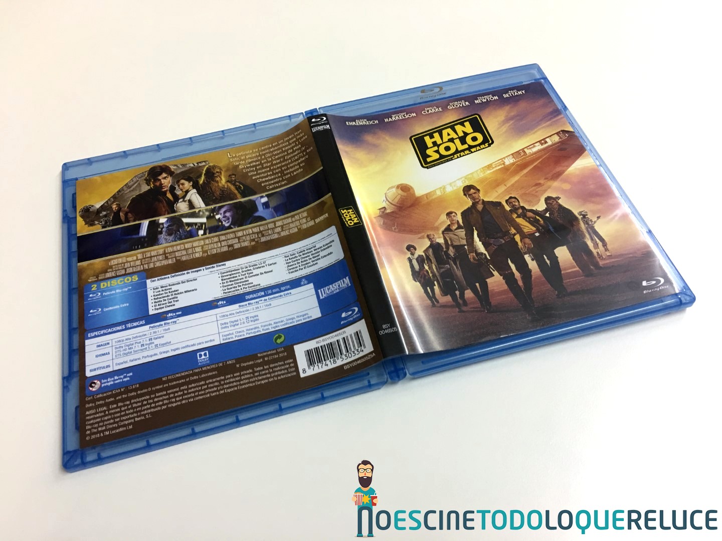 La edición Blu-ray de Han Solo: Una historia de Star Wars está presentada en un estuche azul, habitual de este formato, con uno de los pósters empleados para la promoción de la película en la portada, dejándonos ver a todos los protagonistas delante del Halcón Milenario. En la contraportada nos muestran los datos técnicos, artísticos y sinopsis además de una foto y una ilustración de la película. En el interior del estuche nos encontramos los dos discos, los correspondientes a la película y a los extras, ambos con serigrafías distintas mostrando a los protagonistas y el título en español.