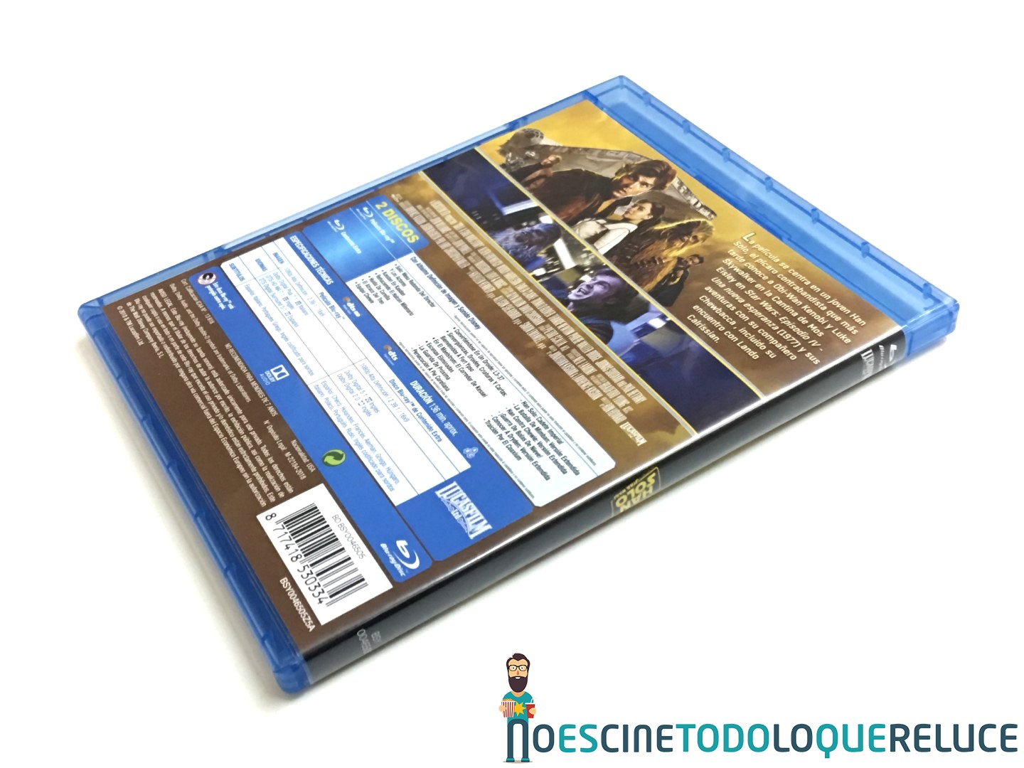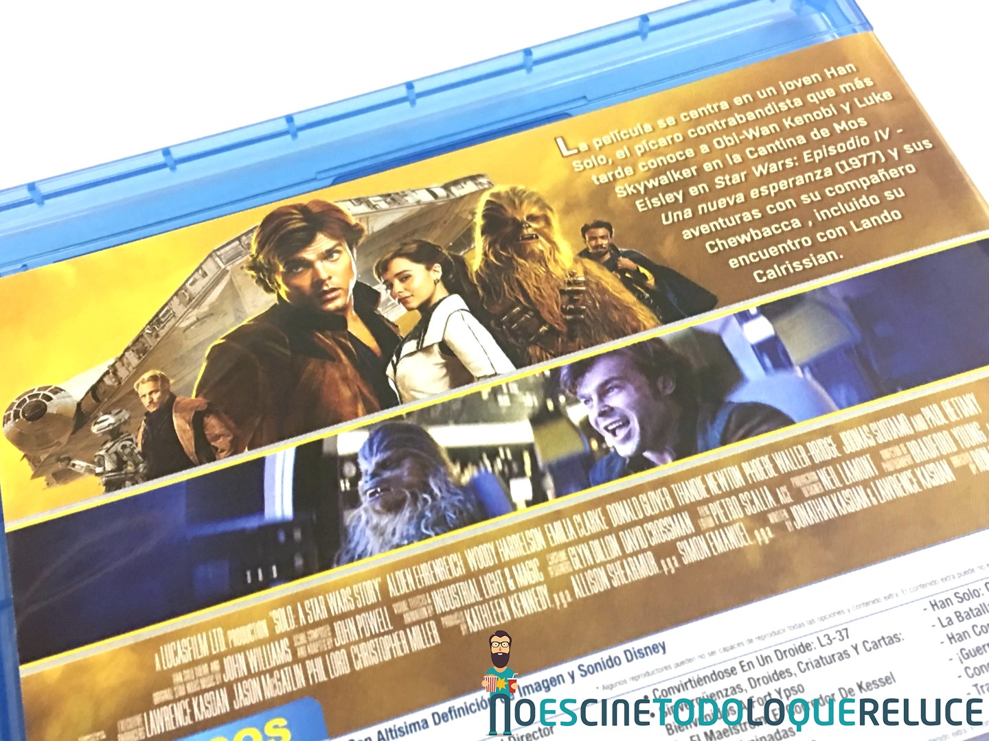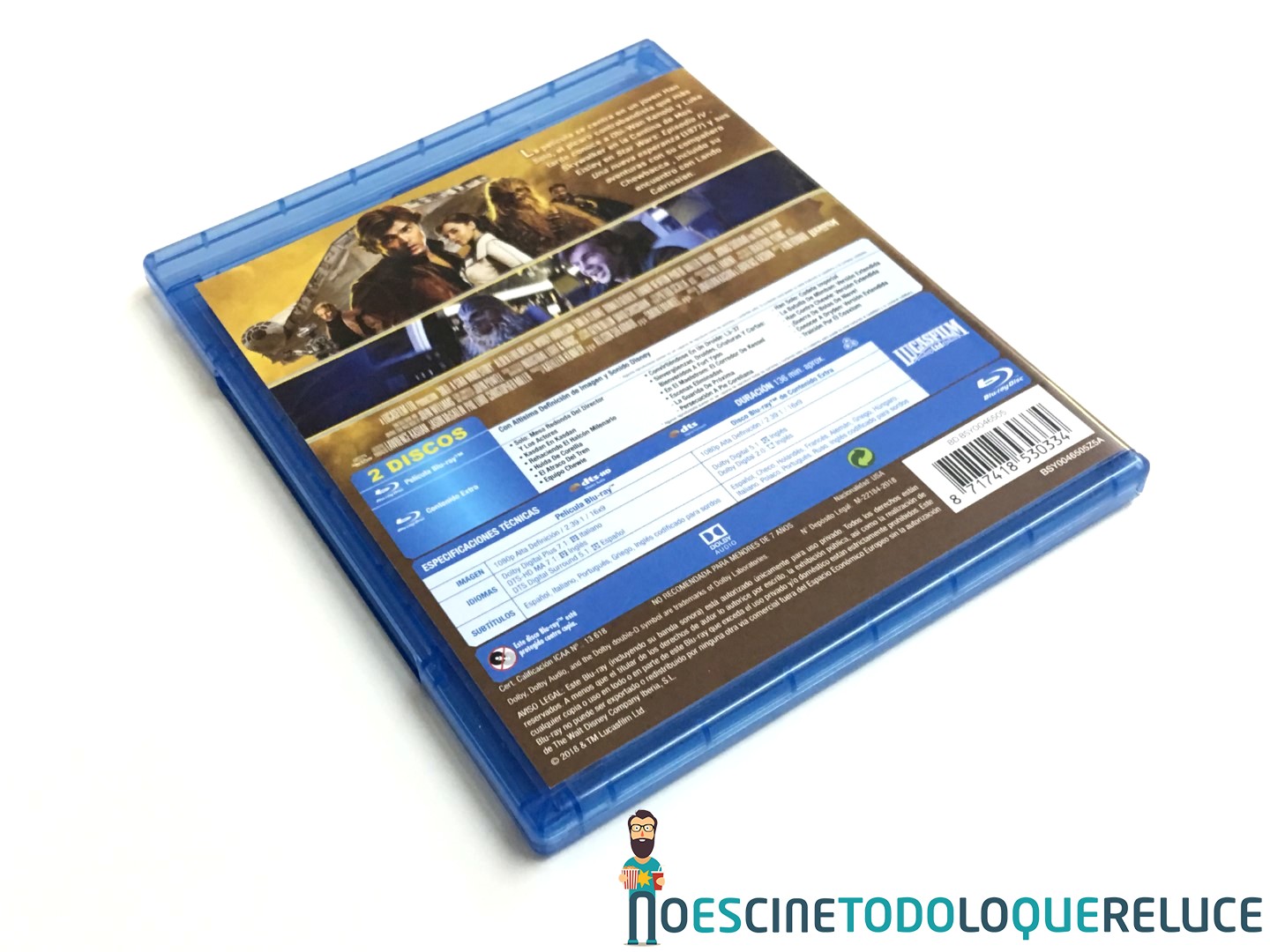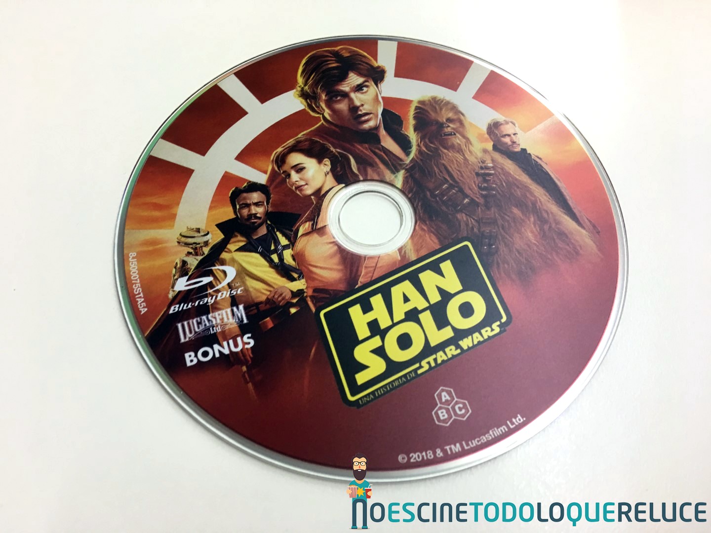 La edición Blu-ray de Han Solo: Una historia de Star Wars está presentada en un estuche azul, habitual de este formato, con uno de los pósters empleados para la promoción de la película en la portada, dejándonos ver a todos los protagonistas delante del Halcón Milenario. En la contraportada nos muestran los datos técnicos, artísticos y sinopsis además de una foto y una ilustración de la película. En el interior del estuche nos encontramos los dos discos, los correspondientes a la película y a los extras, ambos con serigrafías distintas mostrando a los protagonistas y el título en español.