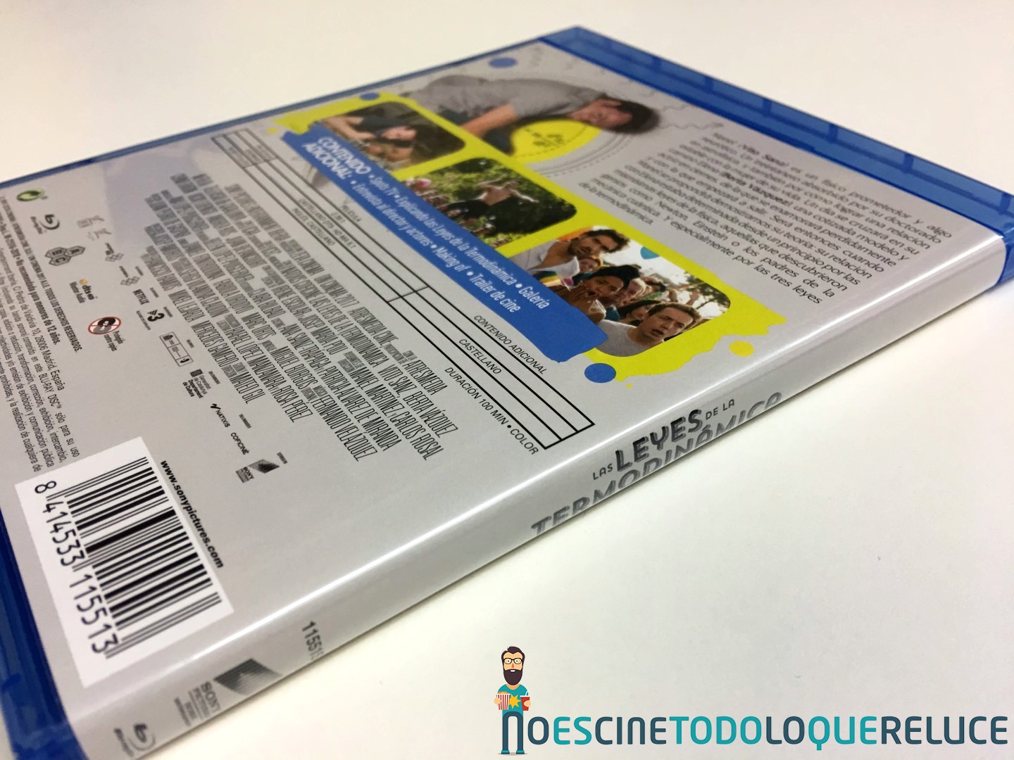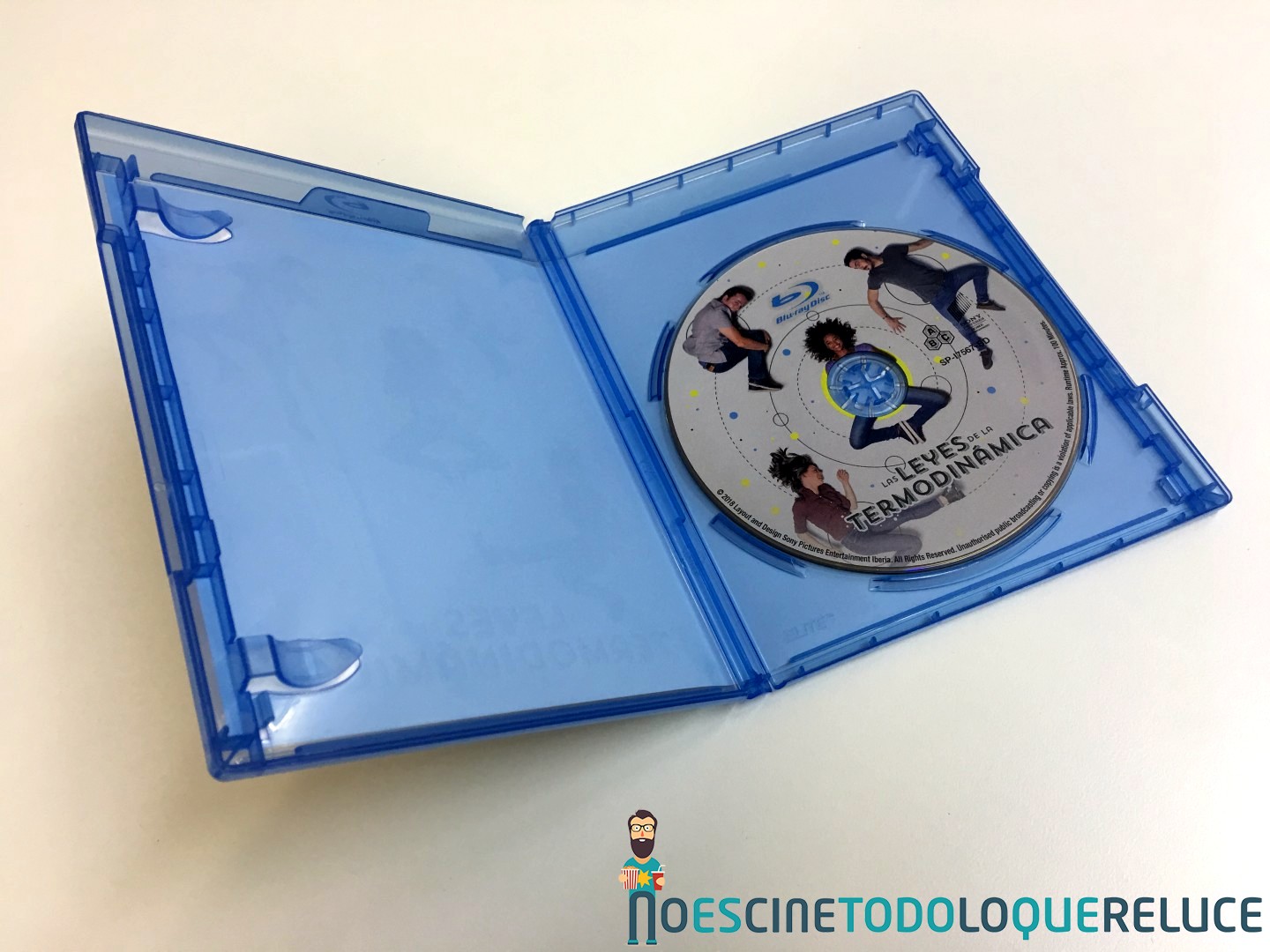 La edición Blu-ray de Las leyes de la termodinámica está presentada en un estuche amaray azul, habitual de este formato, con el póster de la película en la portada, mientras que la contraportada nos muestra los datos técnicos, artísticos y sinopsis además de una selección de imágenes de la película. El disco Blu-ray está serigrafiado con el título español y parte del póster de la película.