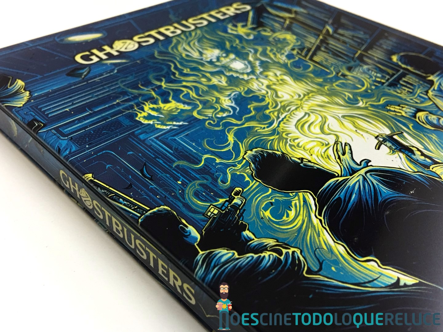 Esta edición Steelbook en formato Blu-ray de Los Cazafantasmas está presentada en un estuche metálico satinado e ilustrado tanto en la portada como en la contraportada, con un diseño que se aprecia completo con el estuche abierto. En el interior nos encontramos el conocido logo de los Cazafantasmas, y es donde se alberga el disco Blu-ray serigrafiado con el título español y el mismo logo. En el papel pegado al steelbook, con dos pequeños adhesivos de fácil despegado, es donde nos ofrecen el título en español en portada, mientras que la contraportada nos muestra los datos técnicos, artísticos y sinopsis además de una imagen de la película.