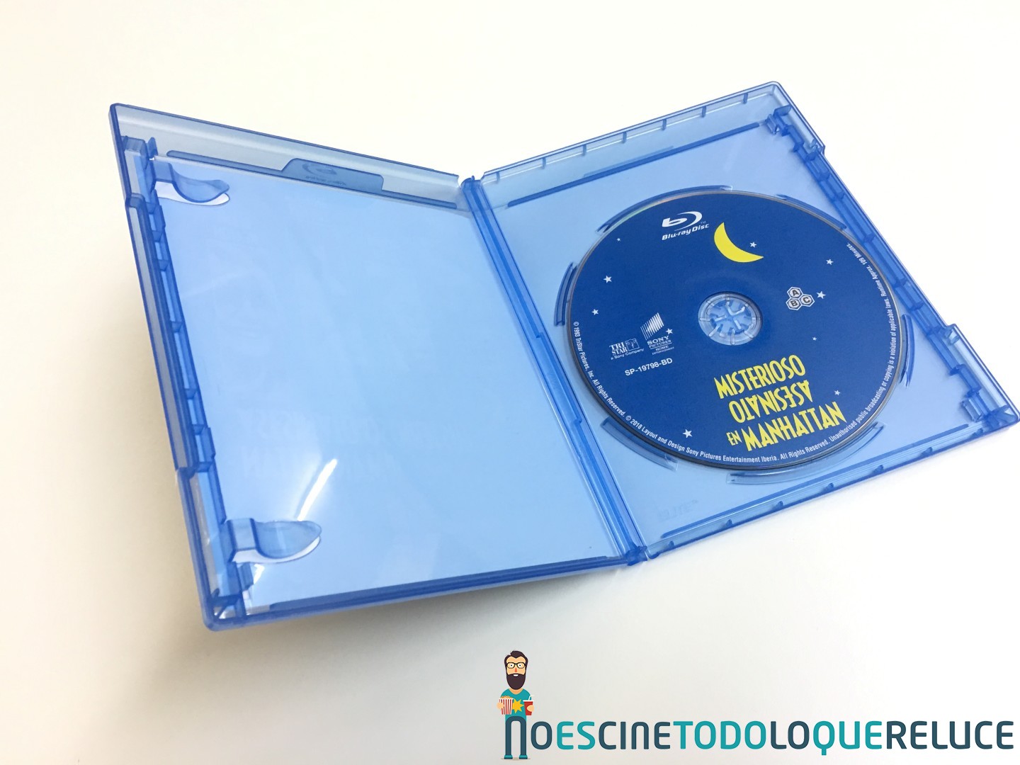 La edición Blu-ray de Misterioso asesinato en Manhattan está presentada en un estuche amaray azul, habitual de este formato, con el póster de la película en la portada, mientras que la contraportada nos muestra los datos técnicos, artísticos y sinopsis además de una selección de imágenes de la película. El disco Blu-ray está serigrafiado con el título español y el fondo del póster de la película.