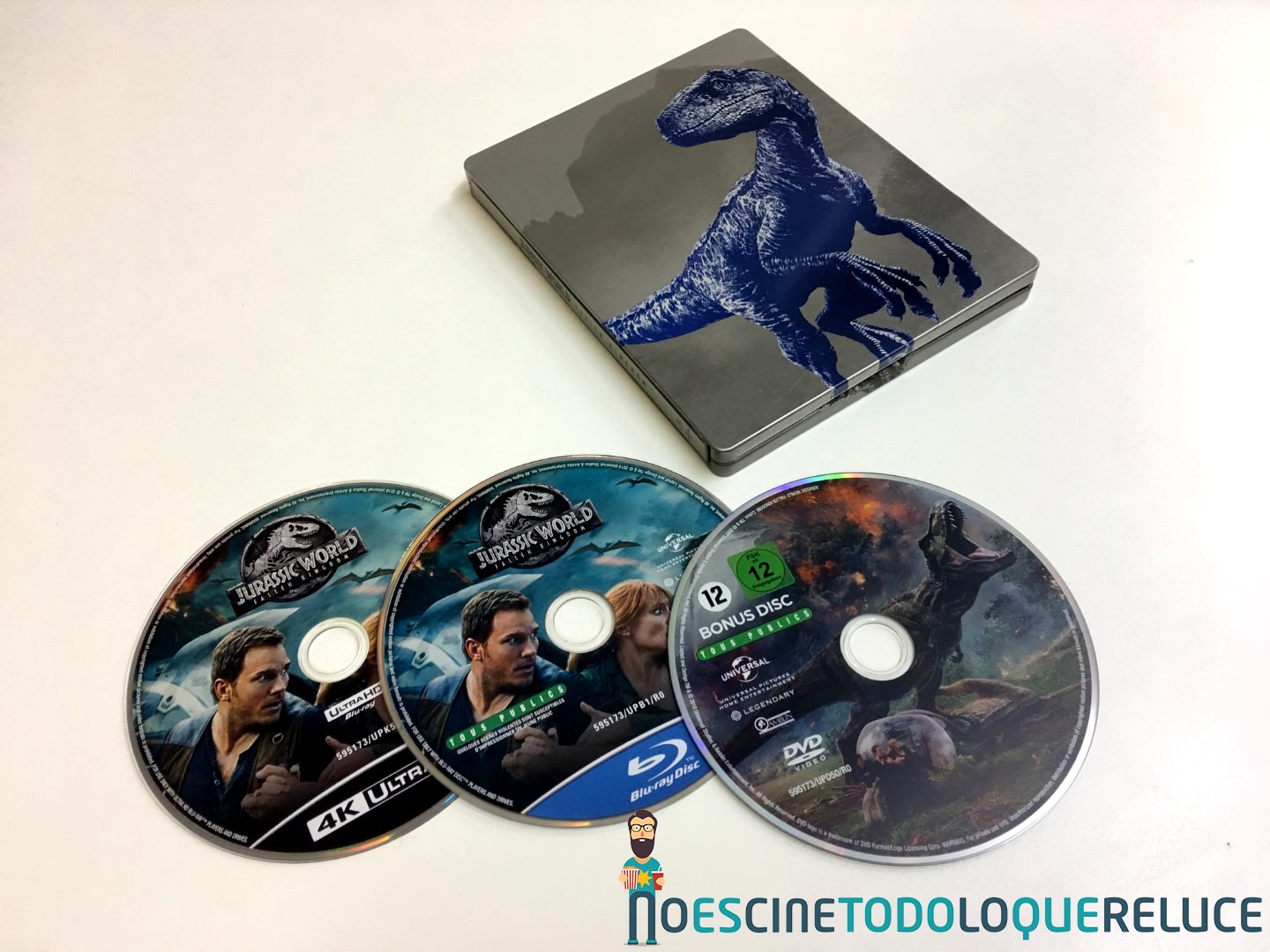 Jurassic World: El reino caído (Universal Pictures, 2018) se ha lanzado a la venta en 10 ediciones distintas a elegir entre estándar, especiales limitadas y packs con toda la colección Jurassic en distintos formatos, como anunciamos aquí. De entre todas ellas ya os hemos ofrecido un artículo -unboxing incluido- del Steelbook lanzado con la película en Blu-ray 3D, Blu-ray y disco de extras en DVD, y ahora gracias a Sony Pictures Home Entertainment os ofrecemos otro artículo con más detalles y un reportaje fotográfico del otro Steelbook que ha salido a la venta, y que incluye la película en 4K UHD, Blu-ray y disco de extras en DVD.